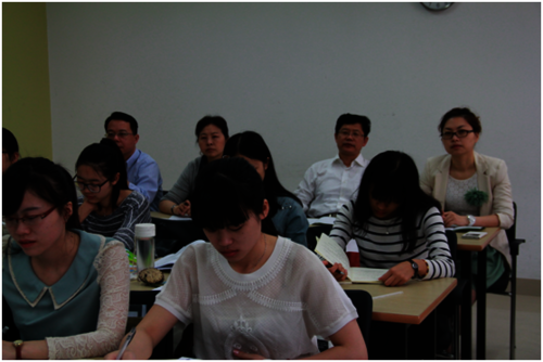 5月7日上午教育学院12级小学语文教学实训课在恕园33号楼206教室正常上课。学校杨磊副校长、实验管理处赵飞老师、教育学院吕静书记、教务处翁灵丽老师、叶红辉老师等前去听课。来自小教121、122两个班的选择语文方向的同学们聆听了副教授吕映老师带来的课。
