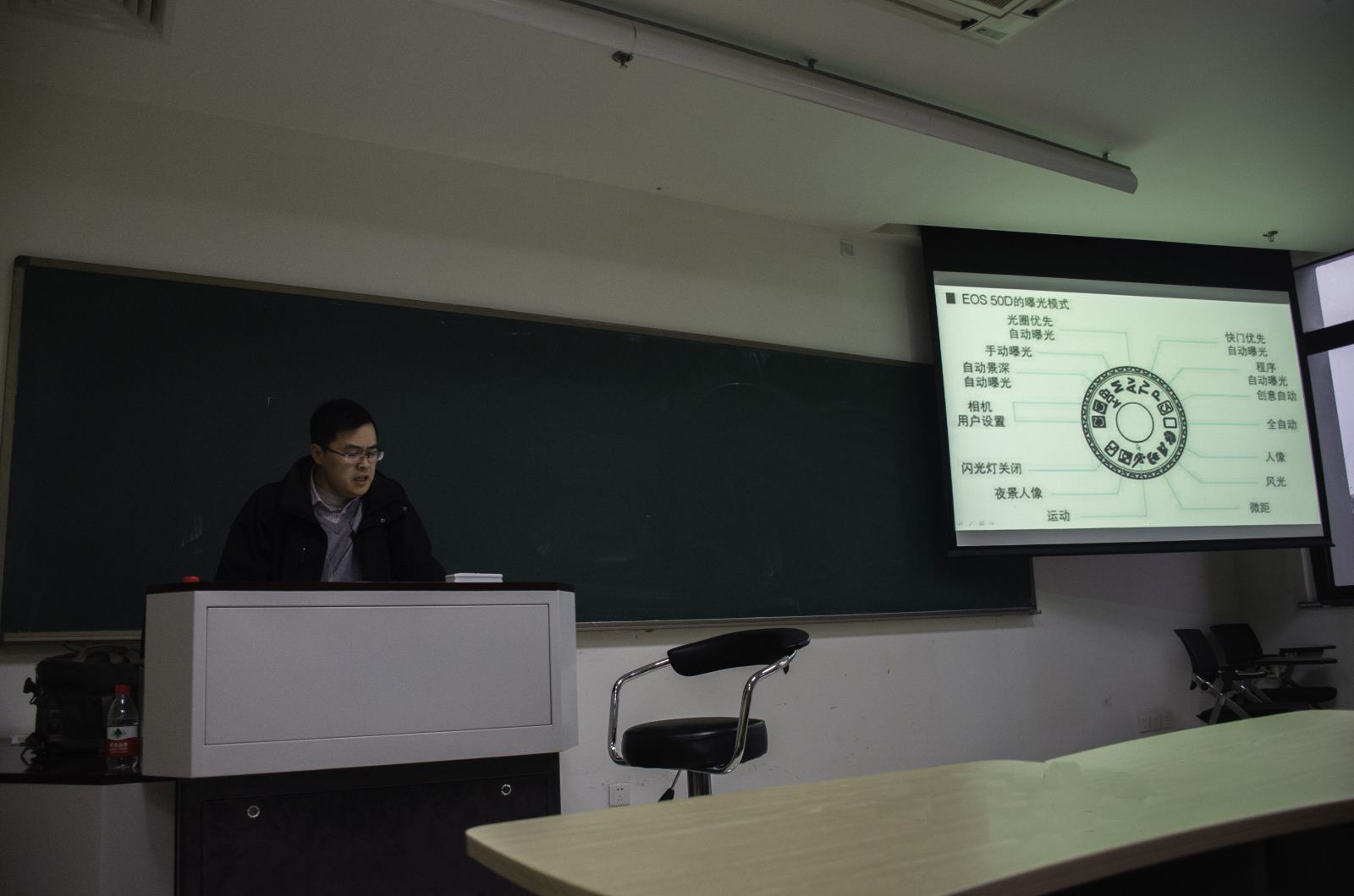 叶老师长期从事新闻宣传工作,对新闻摄影有着非常丰富的经验。培训伊始,叶老师以相机的基本介绍入手,无论是光圈的选择还是参数的调节,叶老师都讲得面面俱到。接着,叶老师从新闻摄影的准备工作、如何拍摄个人讲话和会议场景、新闻摄影的及时性、瞬间抓取的关键性、拍摄角度等方面进行了讲解,期间穿插了大量新闻图片进行举例剖析,让同学们了解得更直观。培训进入尾声,同学们纷纷就拍摄新闻照片时遇到的各种问题向叶老师提问,叶老师也积极地和同学们分享了种种应对方法与注意事项。