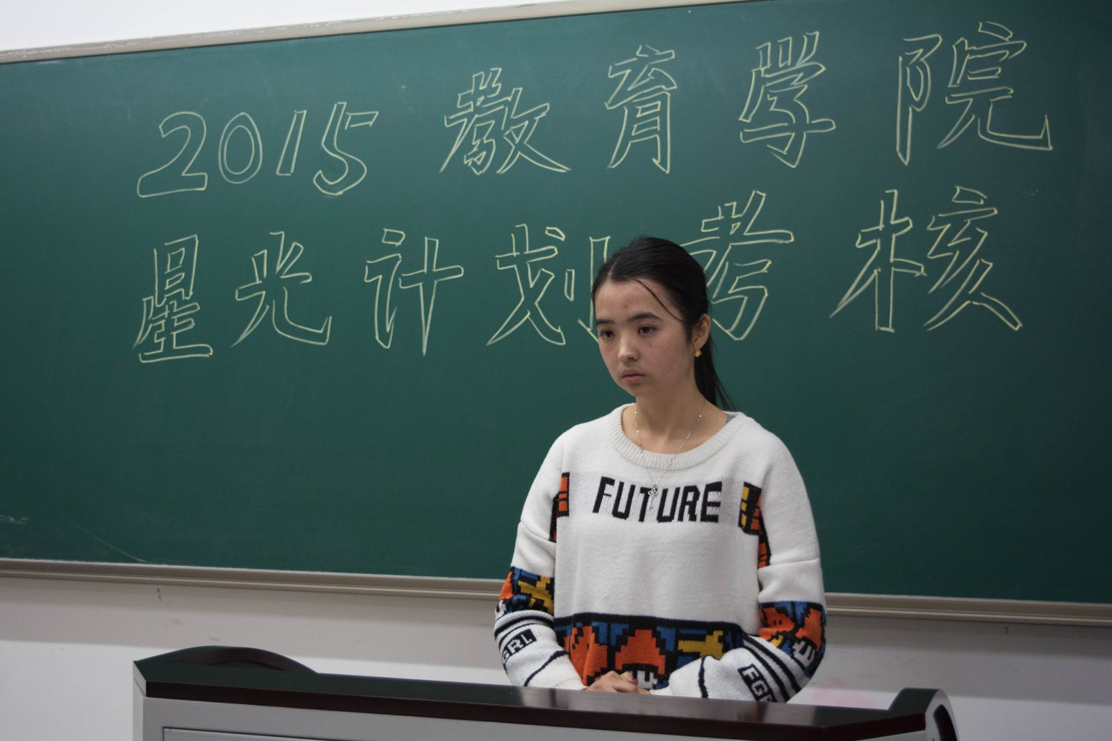 12月23日下午,星光新苗校挑战杯中期报告会暨2015教育学院星光计划考核于恕园14号楼203室顺利召开。教育学院院长助理傅亚强、院团委书记王鑫莅临此次报告会并担任评委老师。