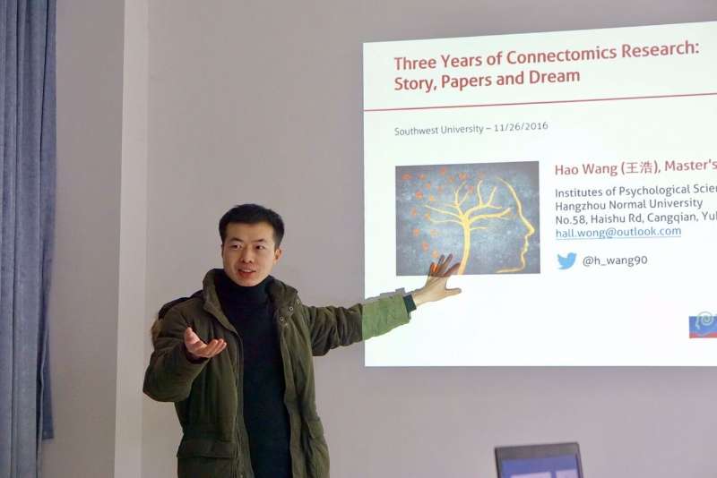 王浩,来自2014级心理学研究生班。在校成绩优异,曾获国家奖学金,经亨颐奖学金,第六届科创杯优秀奖等。目前发表2篇SCI论文,1篇CSSCI论文,参加1项国家自然科学基金面上项目。硕士期间,在导师研究员王金辉博士和认知与脑疾病研究中心主任翁旭初教授的带领下,他所做的工作受多项国家级和北京市基金的支持。他曾多次参加国内外学术会议,发表2篇国际会议论文,并赴瑞士日内瓦参加第22届OHBM年会展示自己的成果。同时他还申请了电子科技大学的博士。而且他积极参与实践活动,申请了研究生处的兼职辅导员——协助老师开展我校研究生的就业工作,工作态度受到老师肯定。以此优异成绩获得教育论文和学术报告奖。