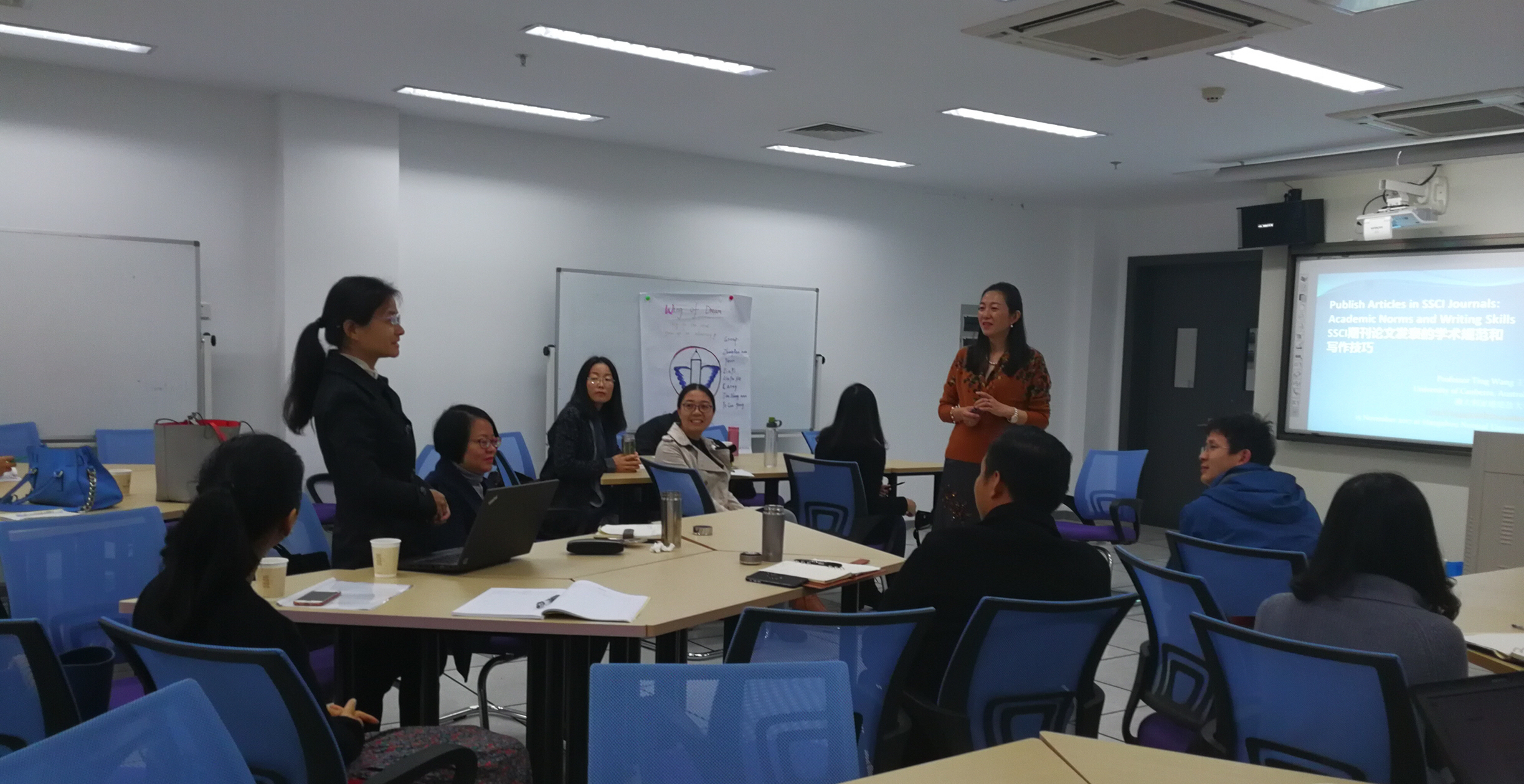 2017月11月15日上午,我校特聘教授澳大利亚堪培拉大学王婷教授与教育学院青年成长营的教师座谈,以“SSCI期刊论文发表的学术规范和写作技巧”主题进行讲座交流。座谈由桃花族论坛 副院长严从根博士主持,20余名青年教师现场聆听了讲座。