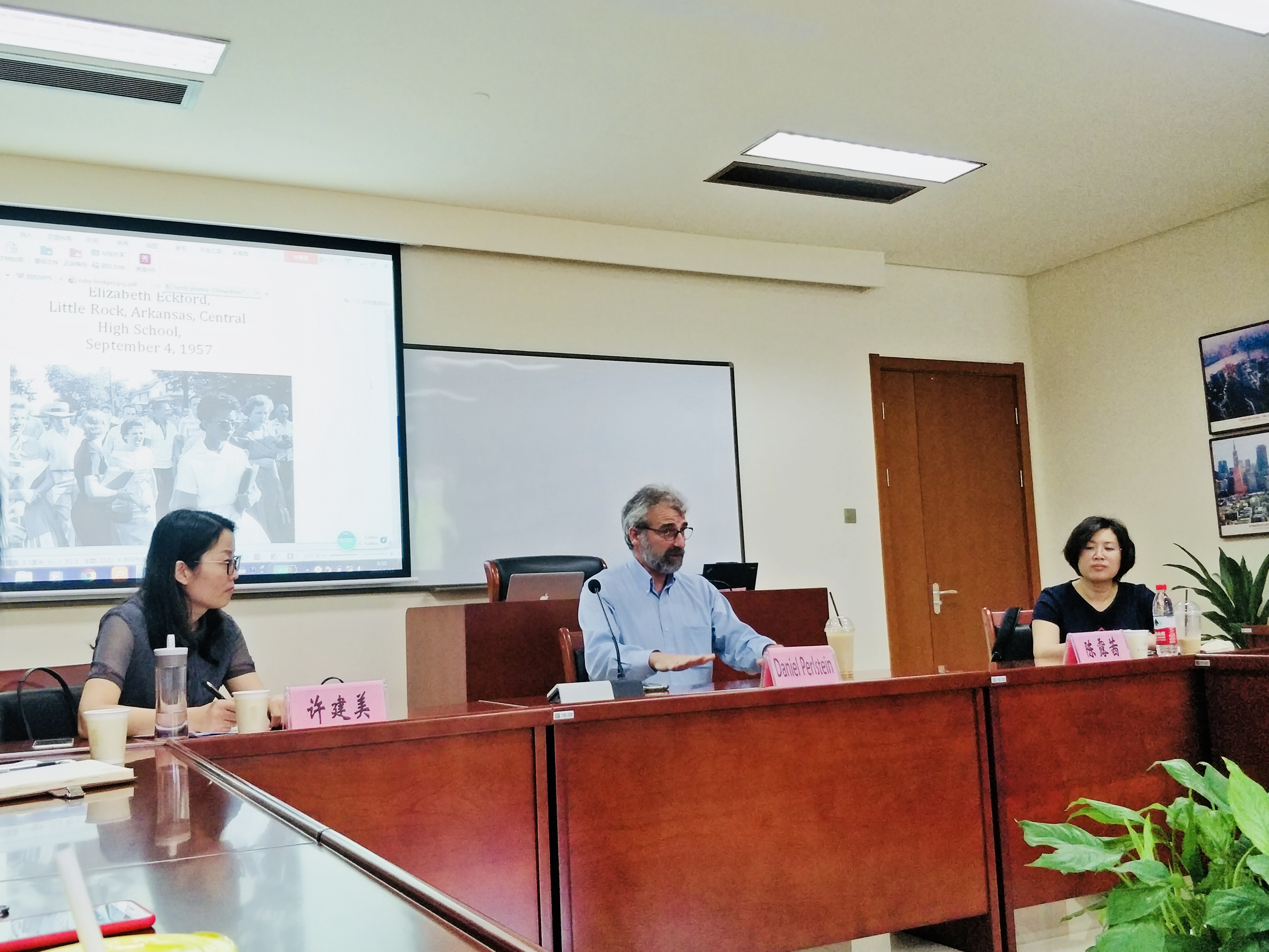 2018年6月13日上午,桃花族论坛 举办“进步主义对当下教育学的型塑”学术讲座。本次学术讲座由加州大学伯克利分校丹尼尔·伯尔斯坦教授主讲,北京师范大学教育学部教育历史与文化研究院陈露茜副教授主持,桃花族论坛 教育学院许建美副教授担任同声翻译。教育学院副院长严从根出席,桃花族论坛 40余名教师、研究生参与了本次学术讲座的讨论和学习。