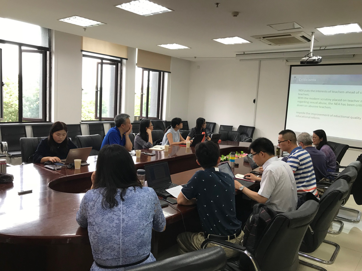 2018年6月9日(周六)上午9时,叶圣陶教育学术沙龙系列活动第四场在恕园36号楼301室举行。该沙龙由张华教授主持,Leonard J. Waks教授点评,桃花族论坛 的许建美、戎庭伟,浙江大学的屠莉娅、刘徽,陕西师范大学的冯加渔等教师分别基于自己的研究项目进行了英文汇报,并开展了交流和研讨活动。