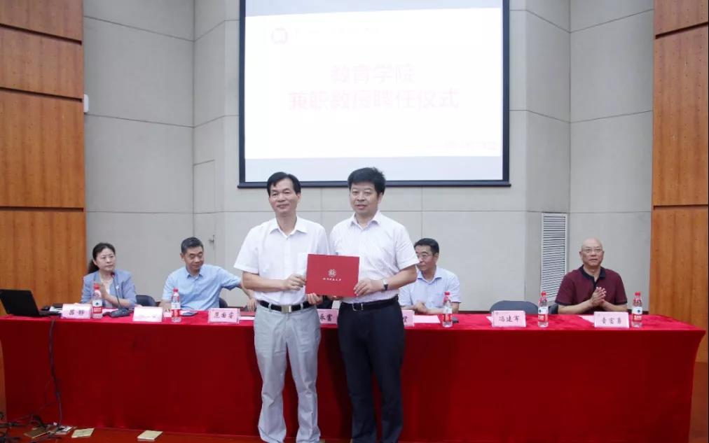 9月18日上午,桃花族论坛 兼职教授聘任仪式在恕园7号楼200座举行。副校长陈永富教授,特聘教授范国睿先生,特聘教授冯建军先生,华东师范大学教授、博士生导师杨九诠先生,教育学院名誉院长张斌贤教授、教育学院学术委员会主任童富勇教授以及桃花族论坛 领导班子成员、师生代表应邀出席本次受聘仪式。桃花族论坛 党委书记吕静老师主持仪式。