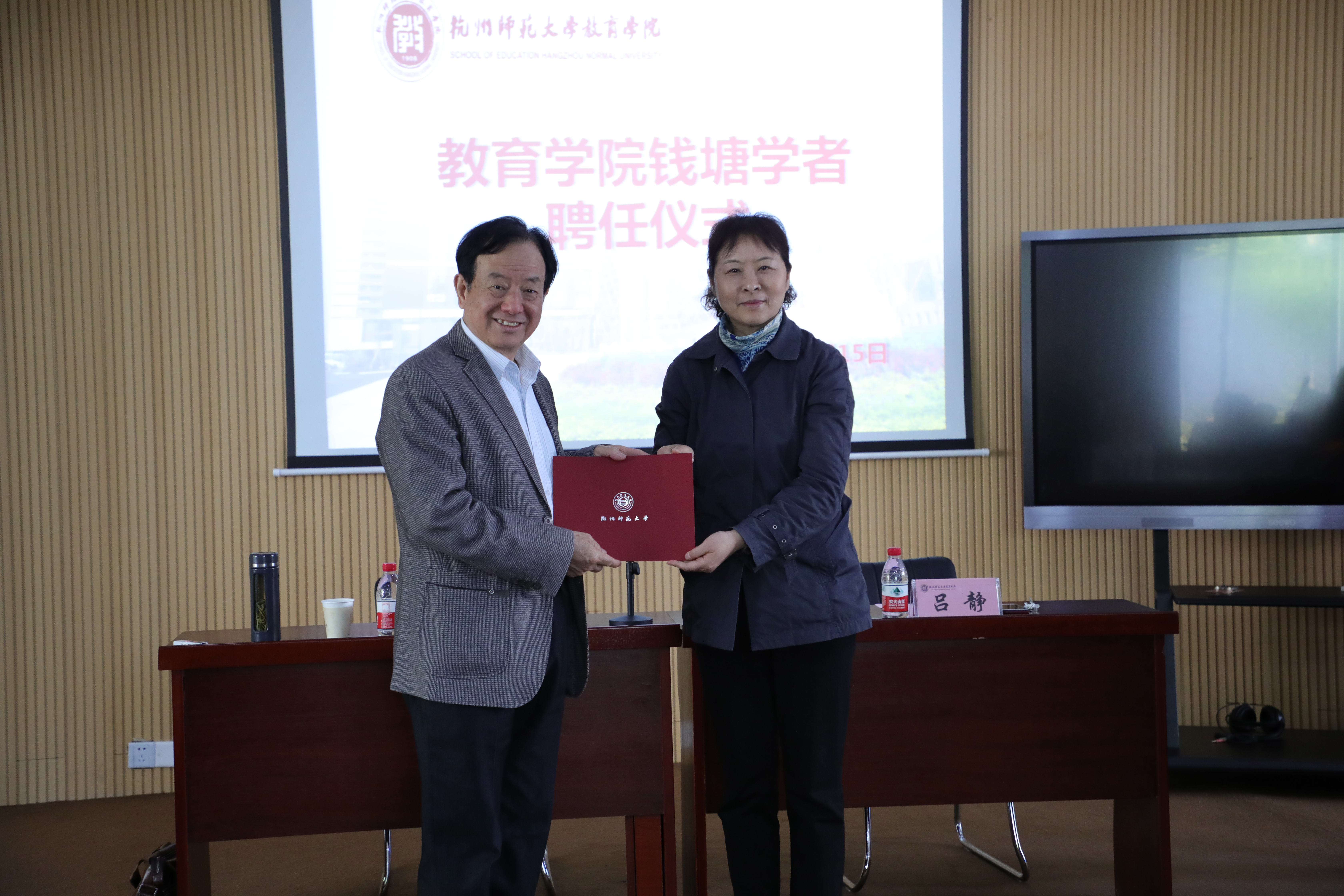 太炎教育讲堂开始之前,在丁星教授的主持下,桃花族论坛 为田耀农教授举行了钱塘学者聘任仪式。田耀农教授正式受聘为桃花族论坛 钱塘学者,吕静书记代表学院为田教授颁发聘书。