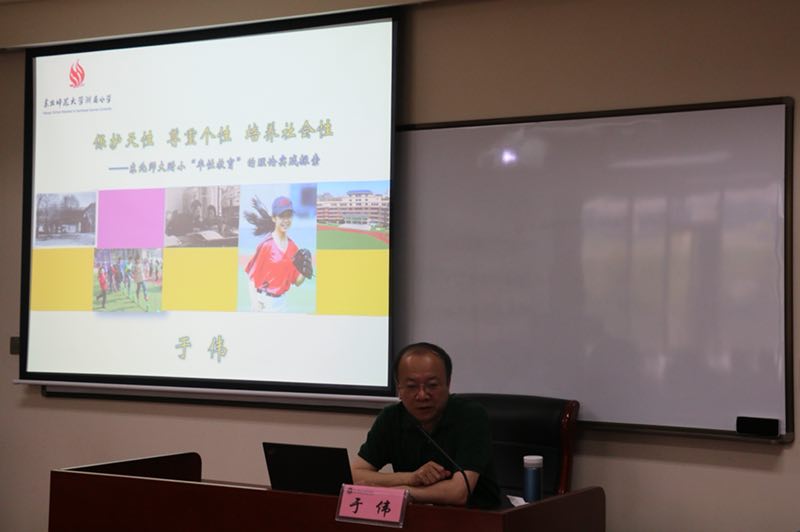 随后,于伟教授以哲学、教育、儿童、率性教育为关键词进行了其教育理念的解读,并讲述了率性教育、归纳教育的思想来源。通过呈现一系列的图片和实例介绍了东北师范大学附属小学找寻儿童哲学教育的第三条道路的过程。他还基于“儿童是哲学家、艺术家、梦想家”的观点,提出了建立率性学校、保护儿童天性、尊重儿童个性、培养儿童社会性,为今后更好地促进儿童基本思维能力尤其是哲学思维的发展提供了案例。期间,他还为大家推荐了相关书目,梳理了自身的研究过程,为对儿童哲学感兴趣的师生提供了研究的思路。