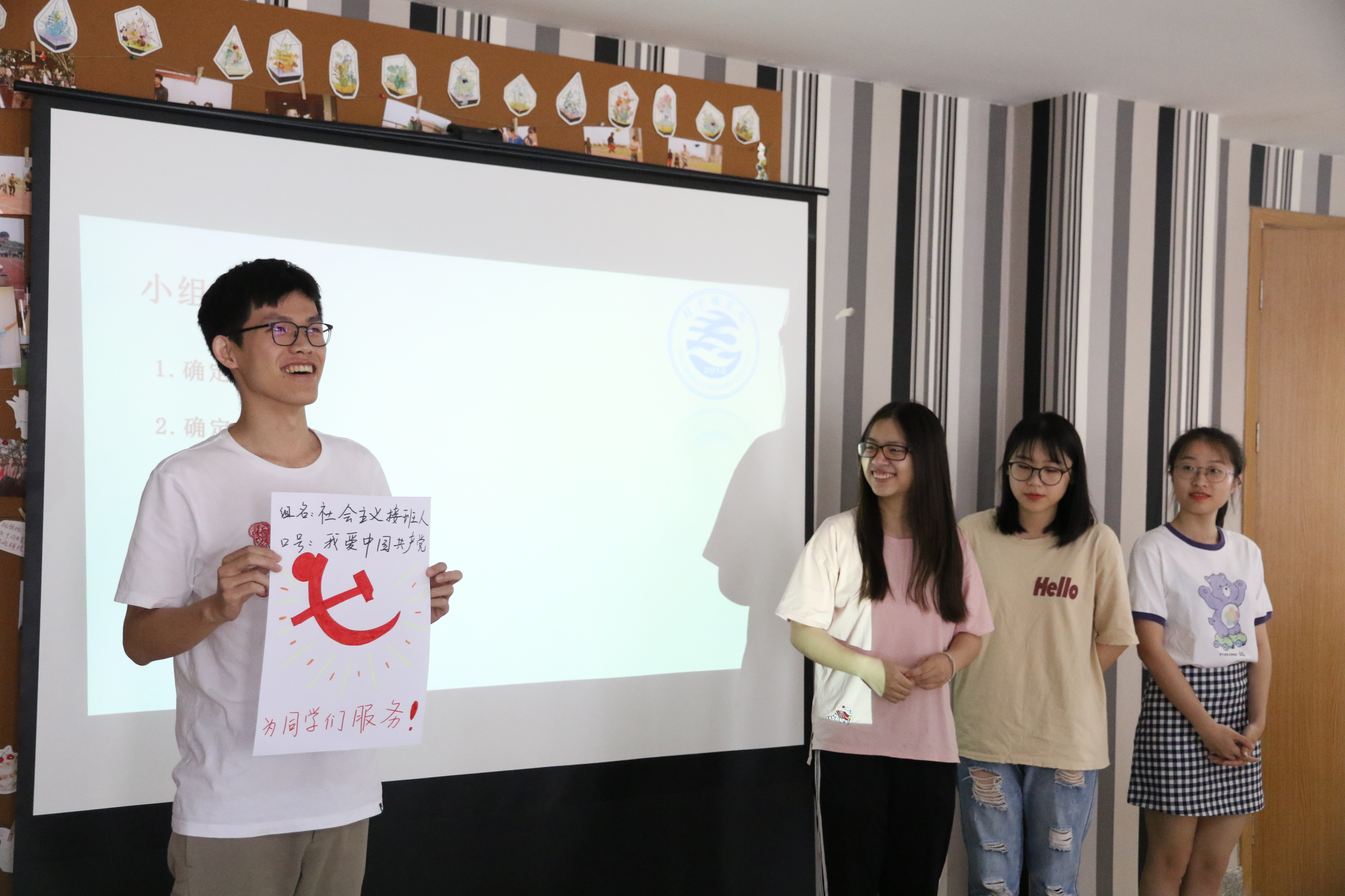 活动伊始,训练营班主任毛少汉老师通过拼图的方式进行分组,拿到相同拼图的同学即为一组,将在场的同学分为三组。接下来,毛老师要求以组为单位,通过设计小组的名字、logo和口号的方式来增加小组的凝聚力。各个小组都别出心裁,进行了独特的设计。同时,毛老师也强调,身为学生干部,最基本也是最重要的一点就是在参加活动或会议时不能迟到,活动准时到场不仅仅是一个学生干部必须做到的,也是你对他人的一种尊重。