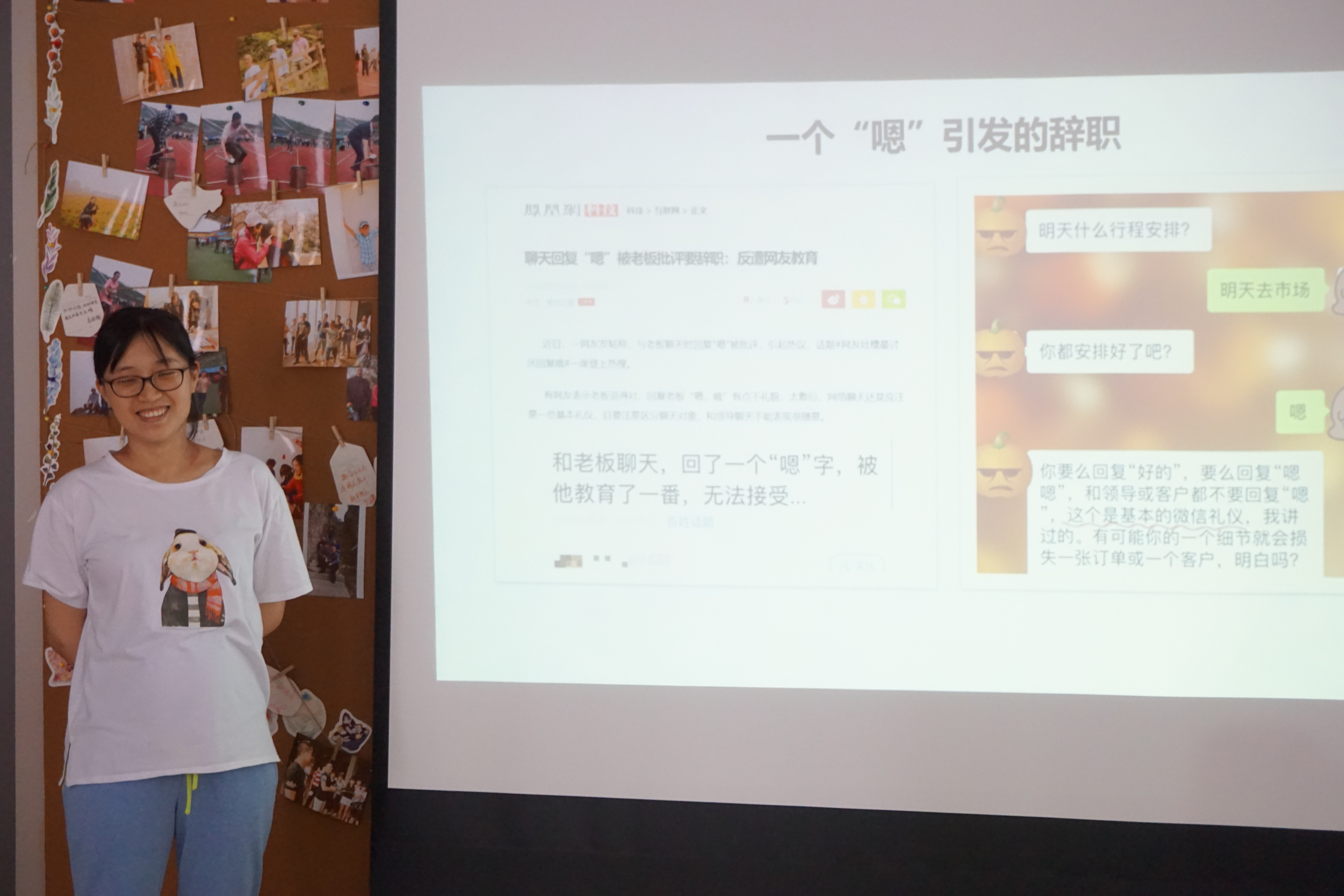 图为齐姗老师在讲解有效倾听与表达