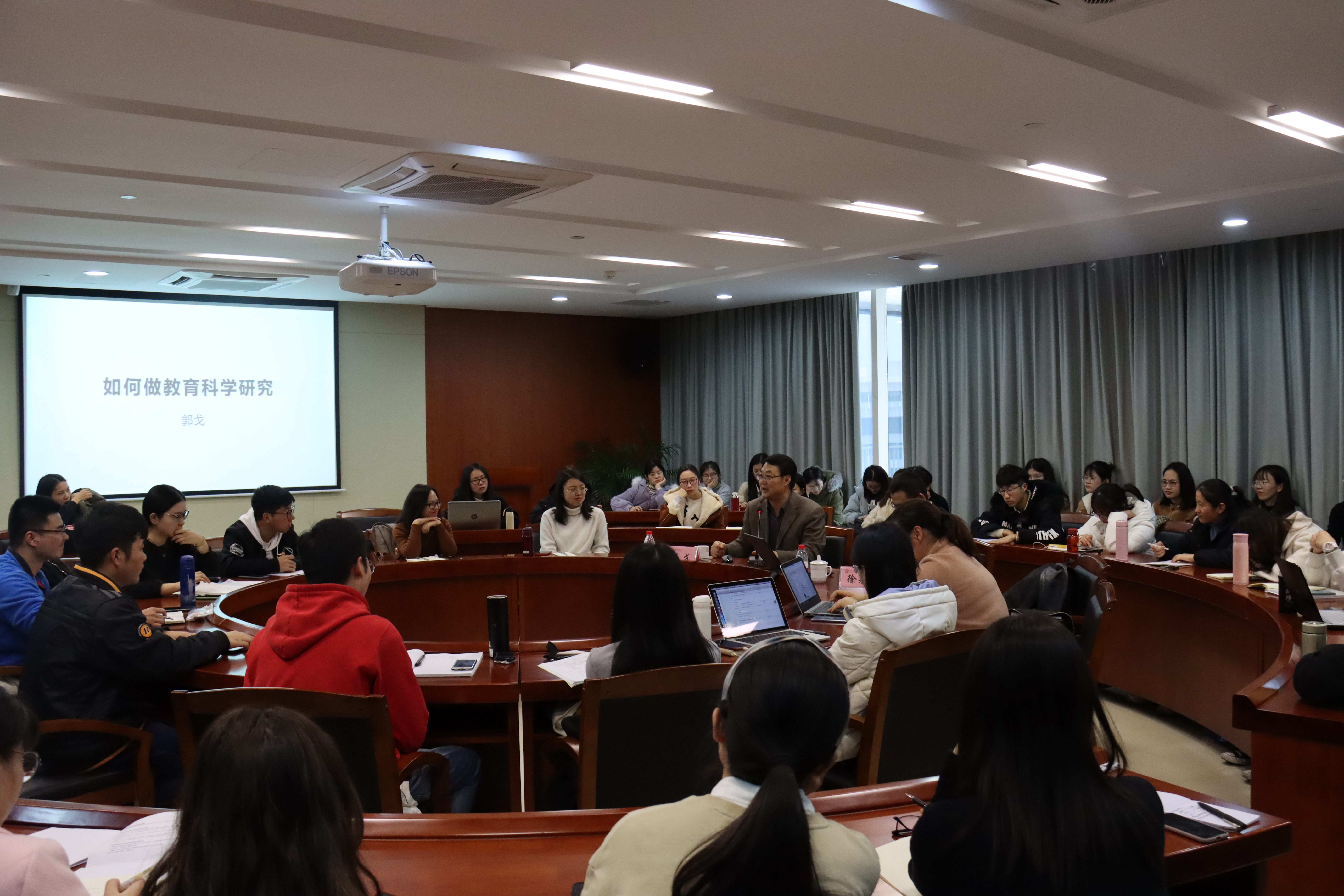 2019年12月5日下午,桃花族论坛 特聘教授,人民教育出版社总编辑、《课程·教材·教法》主编、《中国教育科学》双月刊主编郭戈研究员应邀为桃花族论坛 师生做“如何做教育科学研究”的讲座。讲座由徐光涛副教授主持,桃花族论坛 80余名师生参加。