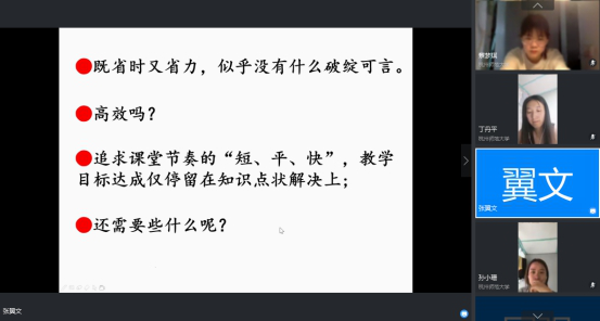 整堂课中,张老师和同学们一起交流互动,并且以具体生动的教学案例使同学们对小学数学教材有了更加深刻的认识,也为同学们在以后教学实践中就如何做好教学设计,如何在课堂上提升学生数学素养提供了启发。