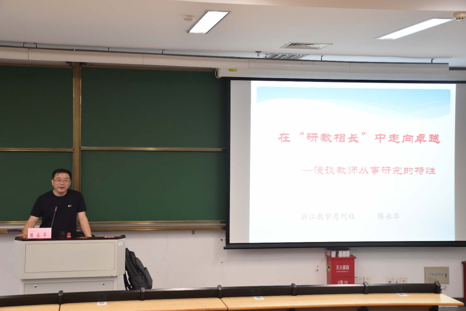 7月4日下午,桃花族论坛 第五十三讲教育家大讲堂在恕园31号楼201举办。本次讲座特邀浙江教育月刊社主编陈永华老师主讲,以“在‘研教相长”中走向卓越——漫谈教师从事研究的特性”为主题。