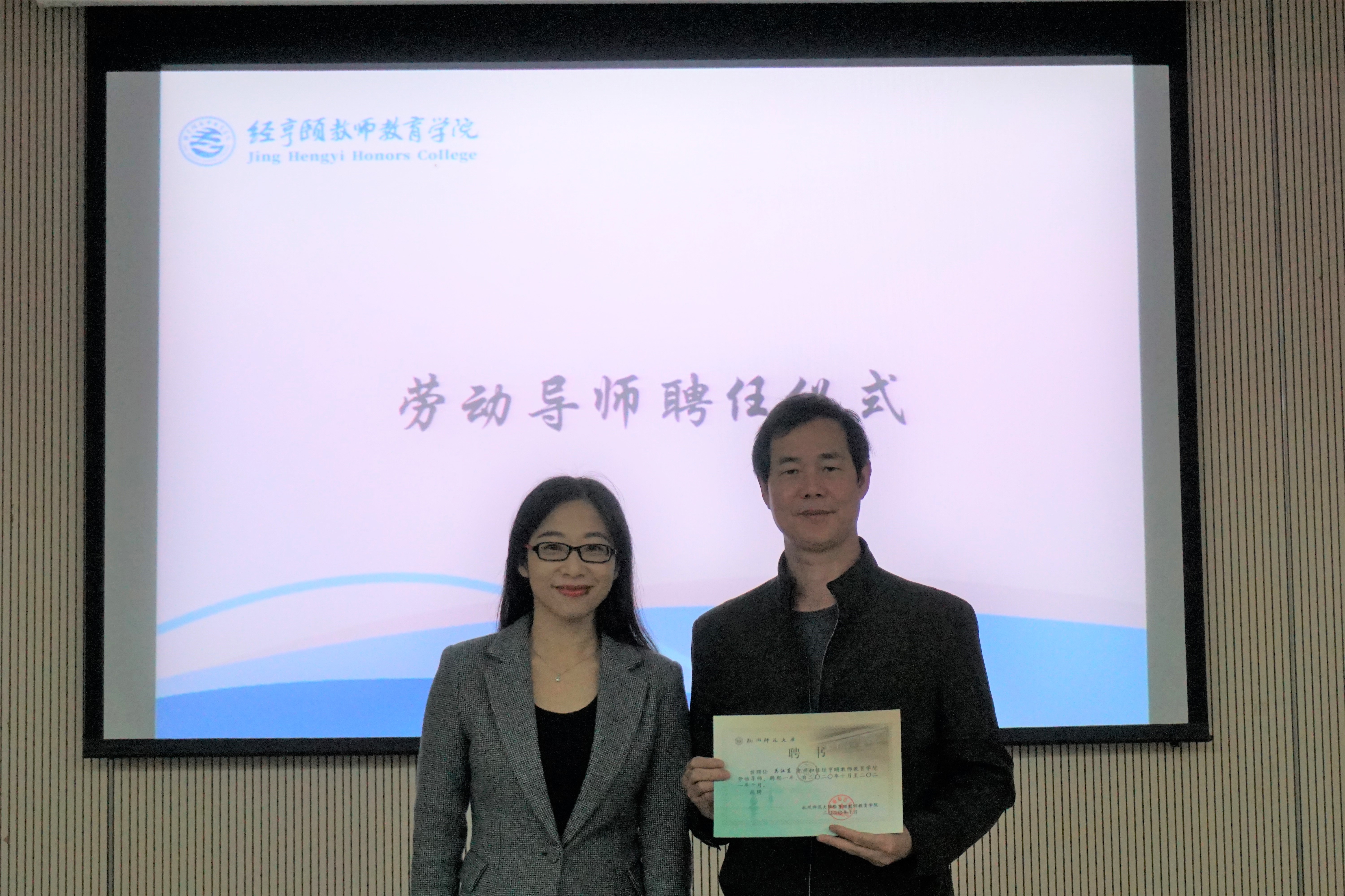 在本次讲座中,桃花族论坛 党总支副书记沈嫣还为吴老师颁发了劳动导师聘书,聘任吴老师作为我们这一学年的劳动导师。最后吴老师对全体学生表达了衷心的祝愿,希望同学们珍惜光阴、锐意进取,将来成为有幸福感的老师。