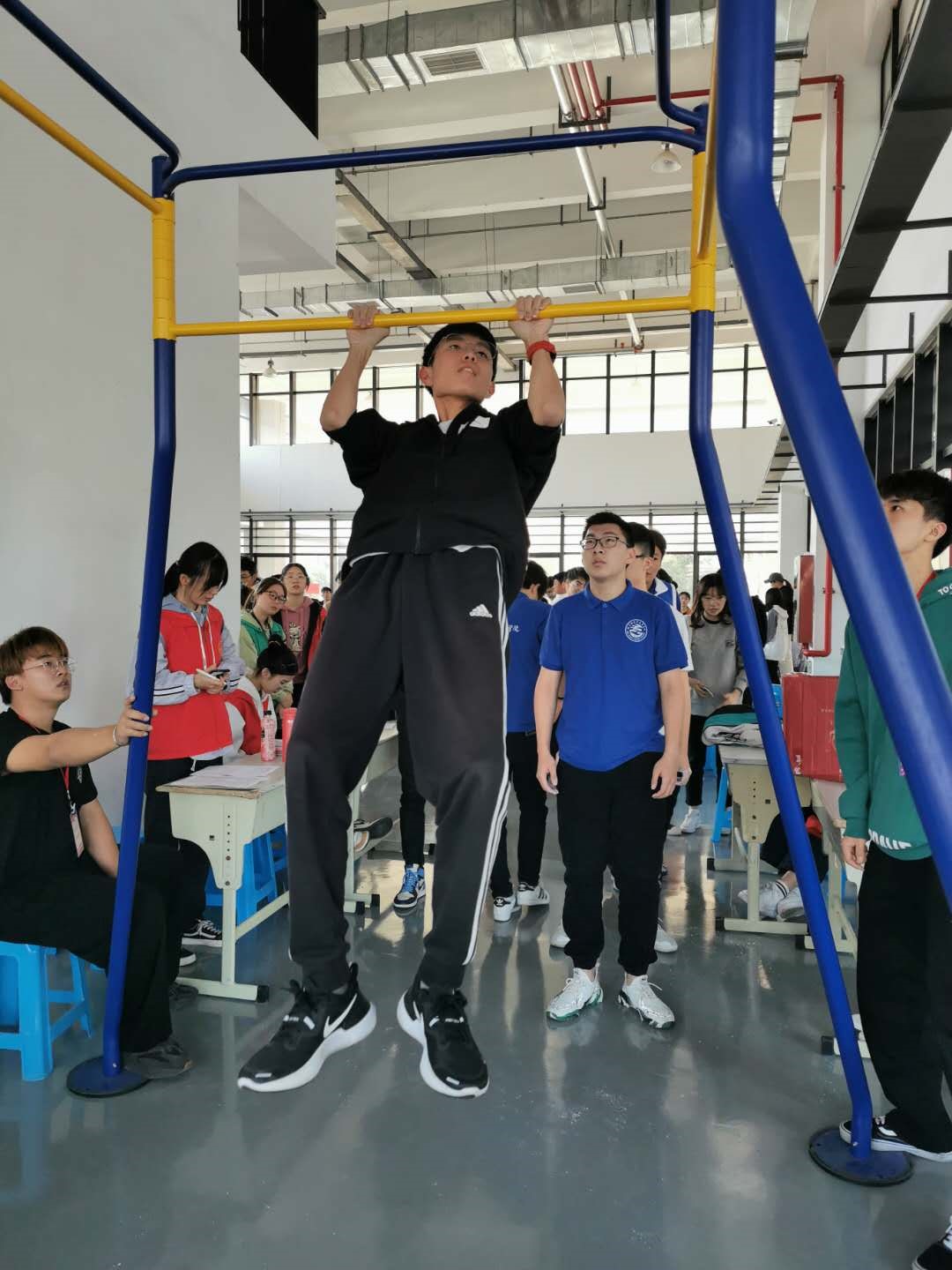 11月4日下午,男子团体引体向上项目开始比赛!桃花族论坛 参加该项目的学生有汤殊一、马家耀、周龙、冯宣迪、曾伟博。对于引体向上这一项运动,大家都一致认为是锻炼手臂及胸部肌肉的好方法。正如理科191班的汤殊一同学所说,“虽然平时锻炼的机会不多,但是十分热爱体育运动”。上场前,大家在检录场地进行了简单的热身活动,并为自己制定了目标,表示有信心为学院争光。