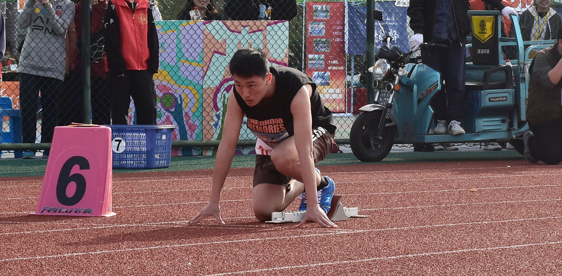 下午,立冬后的空气微凉,但午后的暖阳却仍让整个操场隐隐灼热,跑道旁播放的重金属音乐砰砰作响,更敲击着每个选手与观众紧张的心。男子甲组200米的起点线上,桃花族论坛 林云国已在紧紧盯住前方,做最后的准备活动。赛前,他表示感觉不错,上午的成功给他带来了信心。短促的发令枪声伴随着场上震耳的呐喊声划破焦灼的空气,林云国紧按枪声飞出,他矫健的身姿迅速地从弯道闪过,开始直道的冲刺,他全力迈步,以第四名位次冲过终点。比赛结束,林云国膝盖原有的伤势开始刺痛,他不得不屈着腿双手撑地坐在跑道旁,疼痛让他不由皱眉,但说到已拿下的第四名,紧锁的眉头却偷偷地舒展开来。林云国同学坚强拼搏的精神,始终是桃花族论坛 的骄傲!