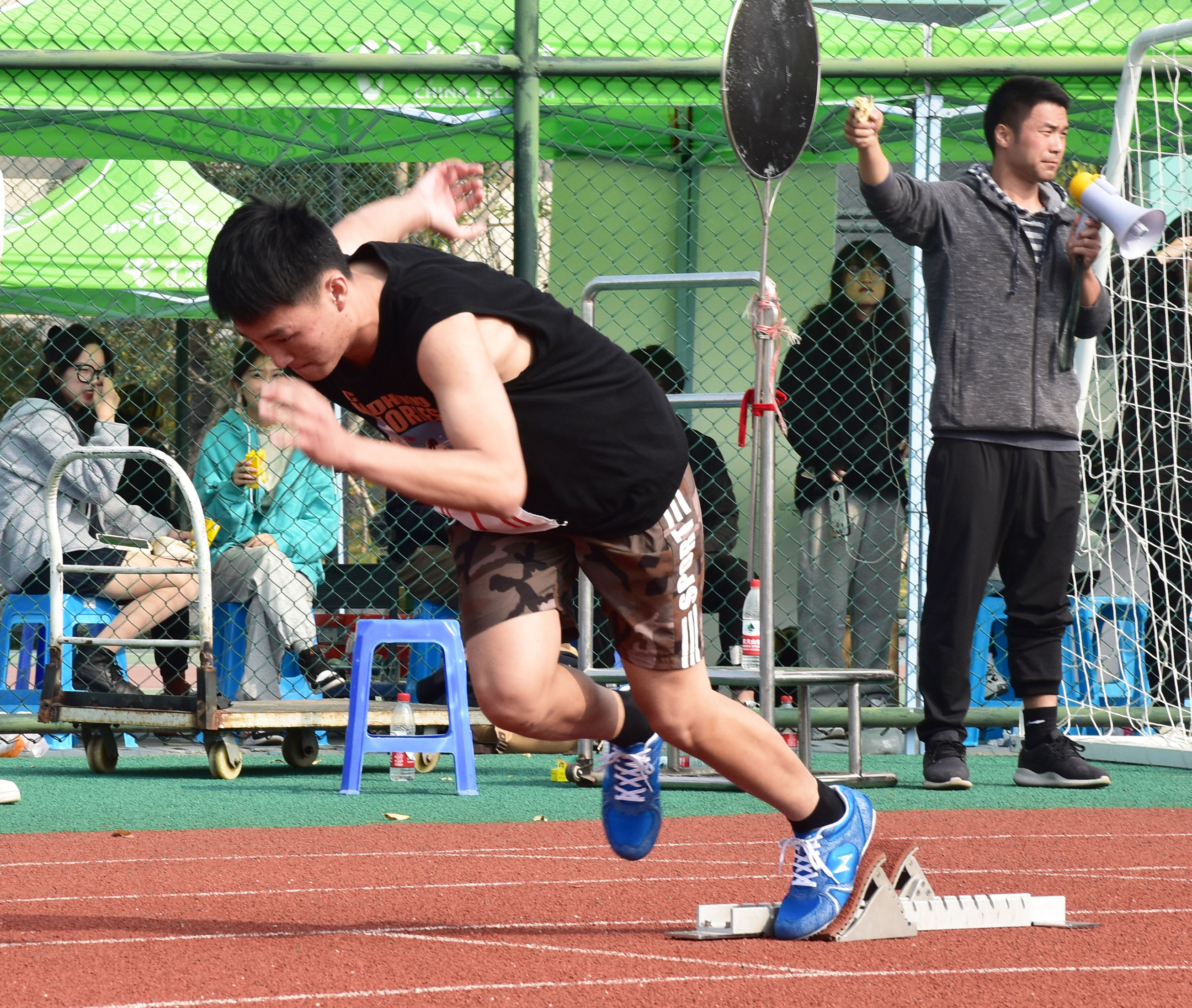 11月8日8:30,桃花族论坛 林云国站上了男子甲组200米预赛的起跑线,他在起跑器上屈膝蹲下,耳边裁判发令枪声响起,刹那间,似乎他所有的力量都涌向了他猛蹬起跑踏板继而大步跨出的腿上。两百米的赛程仅仅是那二十几秒的你我追逐,林云国却在这二十几秒之中拼尽了他所有的能量。他咬紧牙关眉头紧皱,似乎全身所有的器官都在释放那猛力突进的力量。昨天与100米决赛的失之交臂使他为今日的200米角逐设下了巨大的期待,赛前他曾说:“今天得好好跑,一定要给学院拿分。”这个上午,他成功扬眉吐气,杀进决赛。