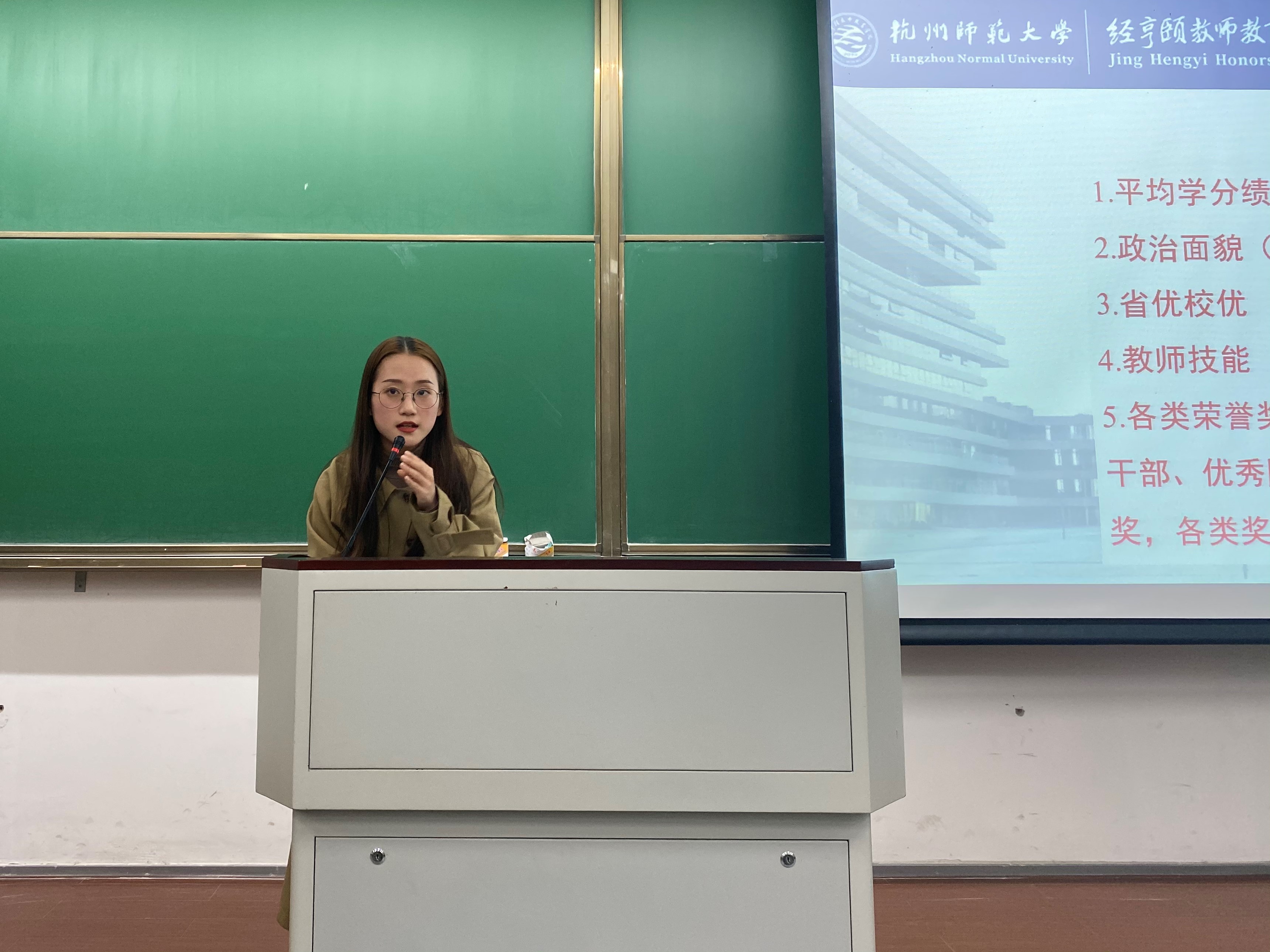 讲座伊始,20级学科教学物理研究生毛涵琪就评奖评优、评奖标准以及评