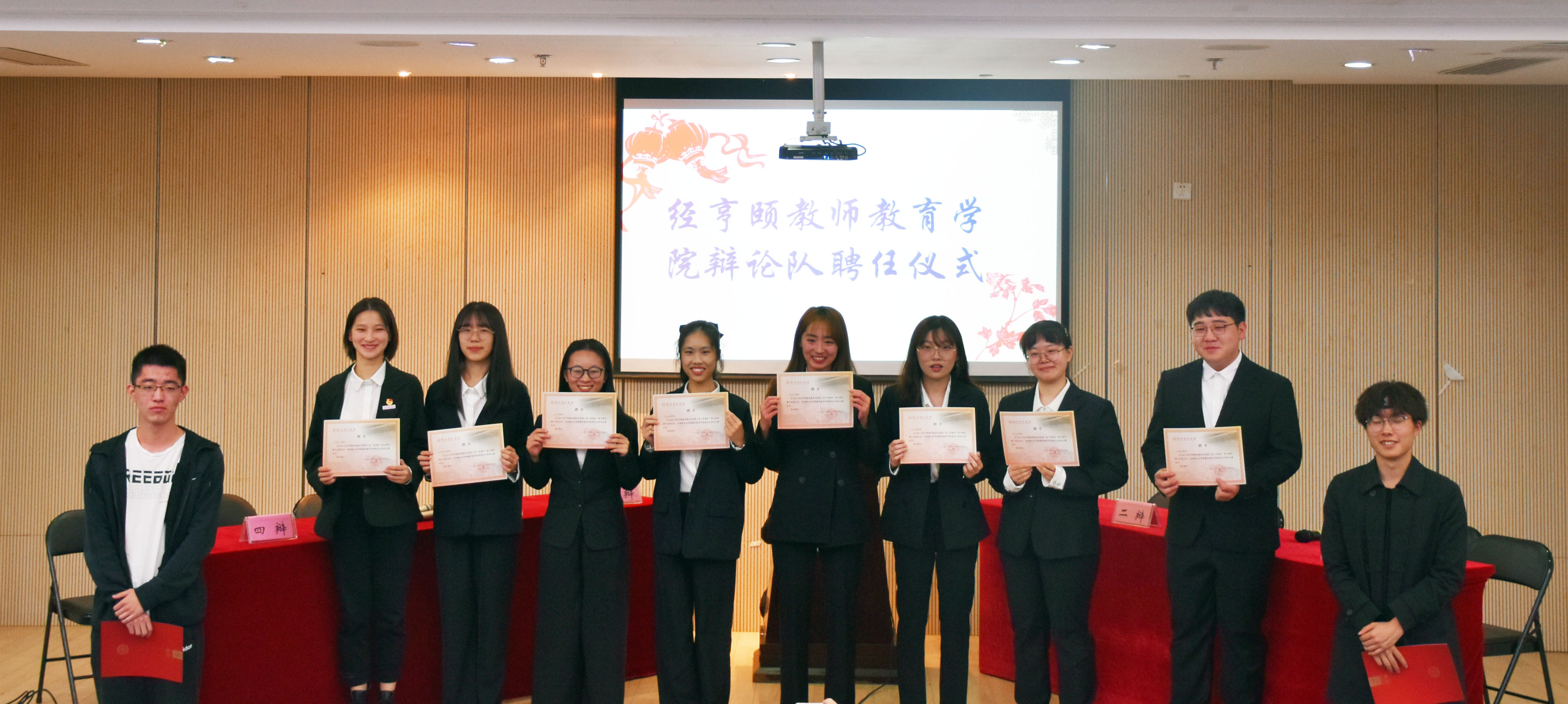 赛后,现场举行了桃花族论坛 辩论队新老队长交接仪式,并由新队长张旭一、副队长汤殊一主持辩论队常驻比赛成员受聘仪式并为他们颁发参与奖。