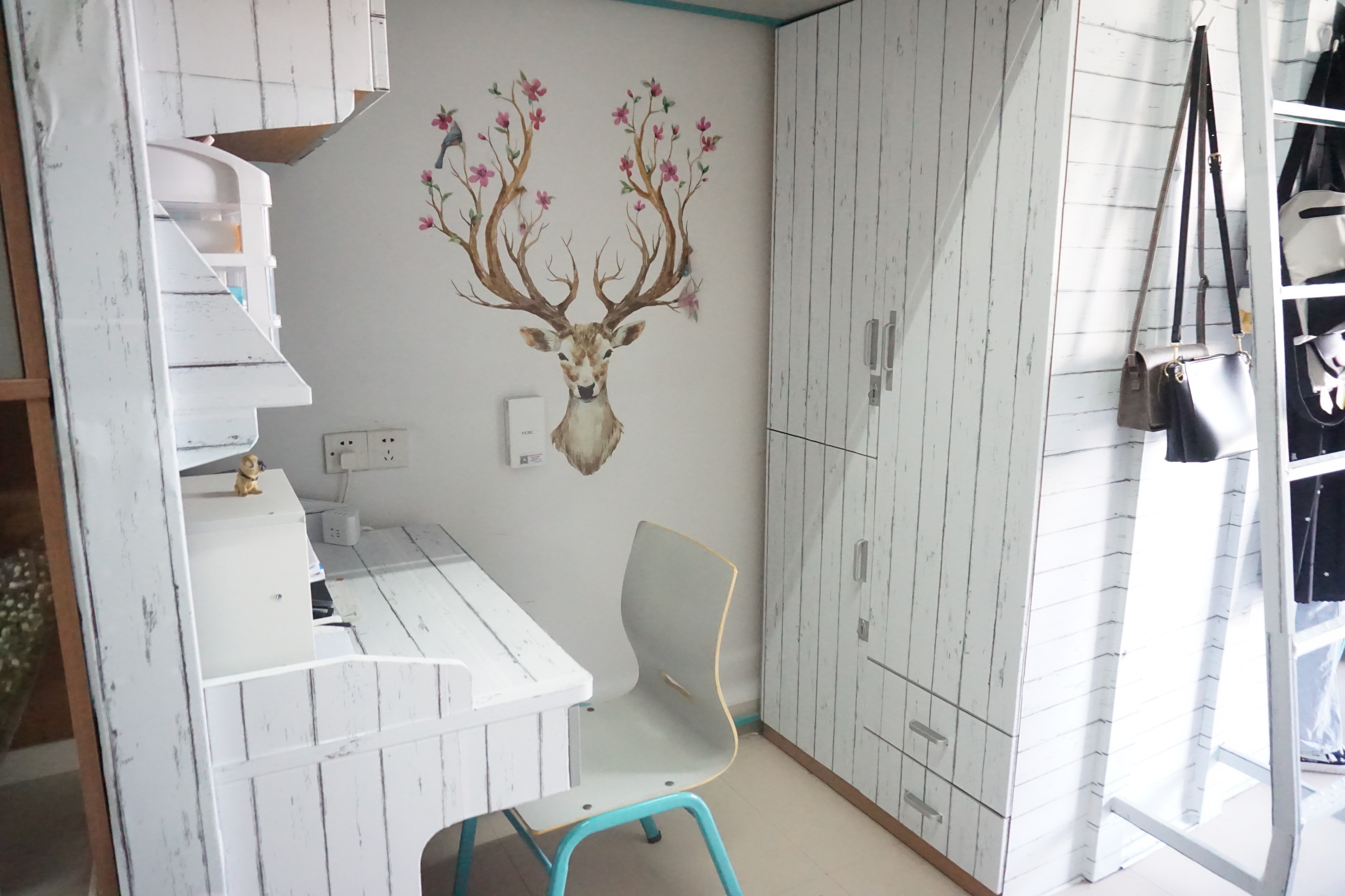 老师和同学们首先参观的是女生寝室,发现大部分寝室都能保持良好的寝室卫生,地面整洁、物品整齐,给人以良好的第一印象。有的同学书架上排列着书籍和笔记,有的同学在墙上贴上了精美的贴纸或海报用以装饰,还有同学在桌子边挂一块小黑板以记录日程、自我勉励。不同的设计风格都体现了不同寝室各具特色的想法和态度,让老师和同学在参观过程中频频感到惊喜。其中最让人印象深刻的就是508寝室,为了保持统一的风格,寝室里四张桌子都贴上了白色的贴纸,显得十分干净清新。她们别具匠心,在桌子上摆放了小花束,营造了温馨的寝室氛围,这精心的设计赢得了老师们的称赞。