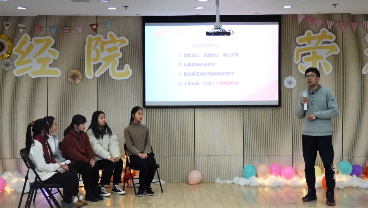 第二篇章继而翻开。经英学社带来情景剧《Jing Yenglish Corner》,成员们用流利标准的口语和轻快有趣的讨论,向台下传达着经英口语角的设计初心,传递出口语角对同学们诚挚的邀请与欢迎。