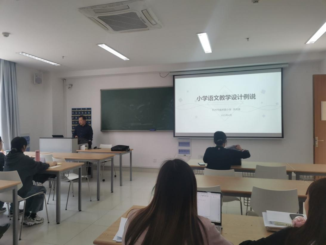 2021年4月20日下午,杭州市省府路小学的校长,特级教师关祥荣为2020级小学教育语文方向的研究生带来了一场题为《小学语文教学设计例说》的讲座。关校长提出课堂教学设计的追求是引起学生学习、建立精准目标、形成语文素养、唤醒探究欲望,这四点分别对应教学设计的起点、落点、终点、盲点,本次讲座针对这四点展开,通过结合许多的课文实例,理论与实践相结合,让同学们受益匪浅。