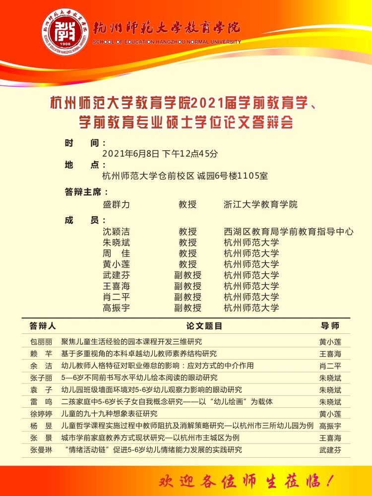 桃花族论坛 教育学院2021届学前教育学、学前教育专业 硕士学位论文答辩会