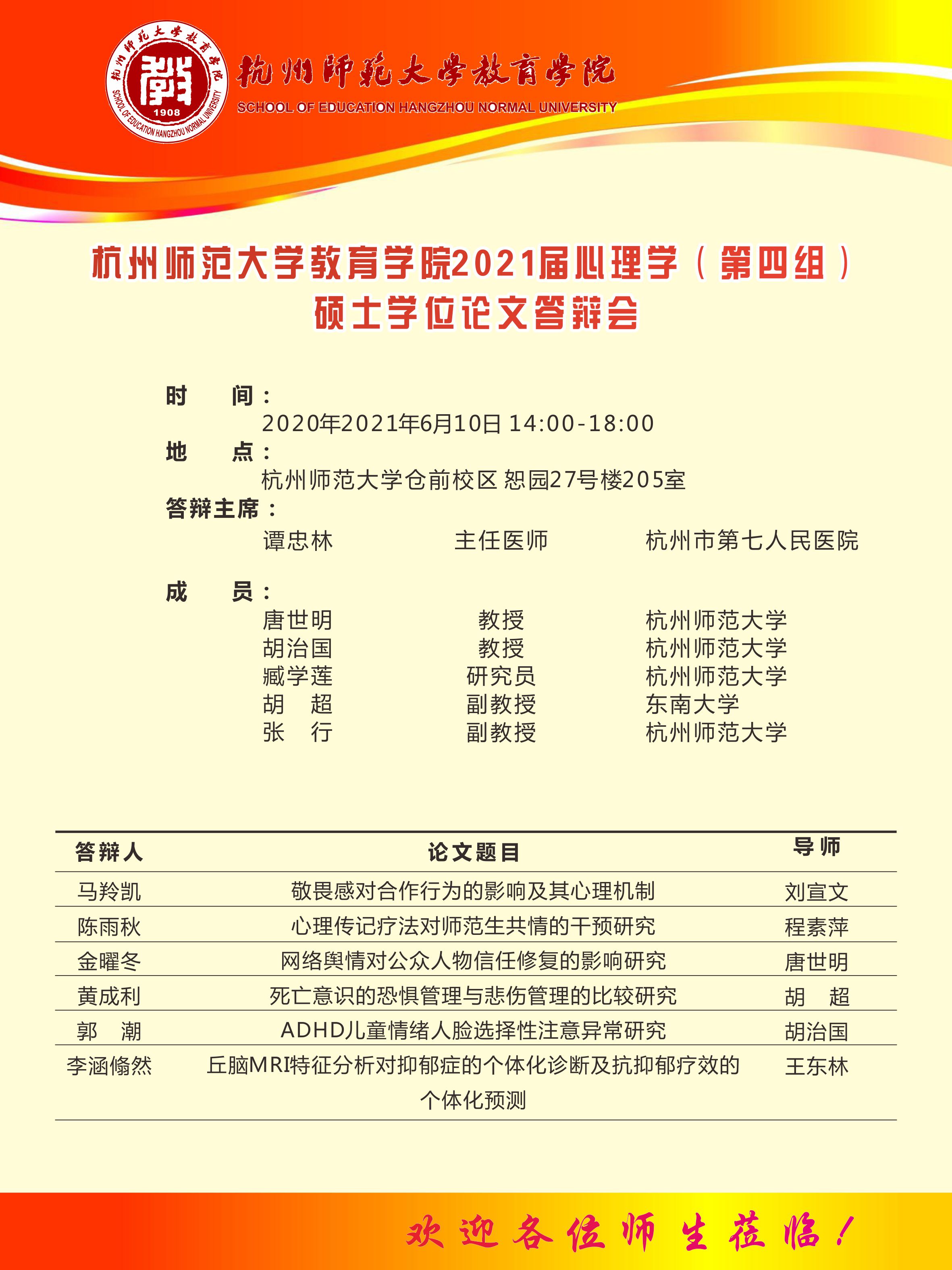 桃花族论坛 教育学院2021届心理学(第四组) 硕士学位论文答辩会
