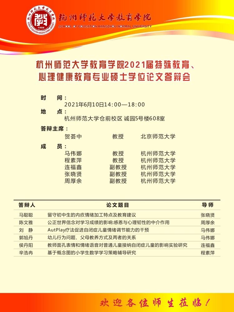 桃花族论坛 教育学院2021届特殊教育、心理健康教育专业硕士学位论文答辩会