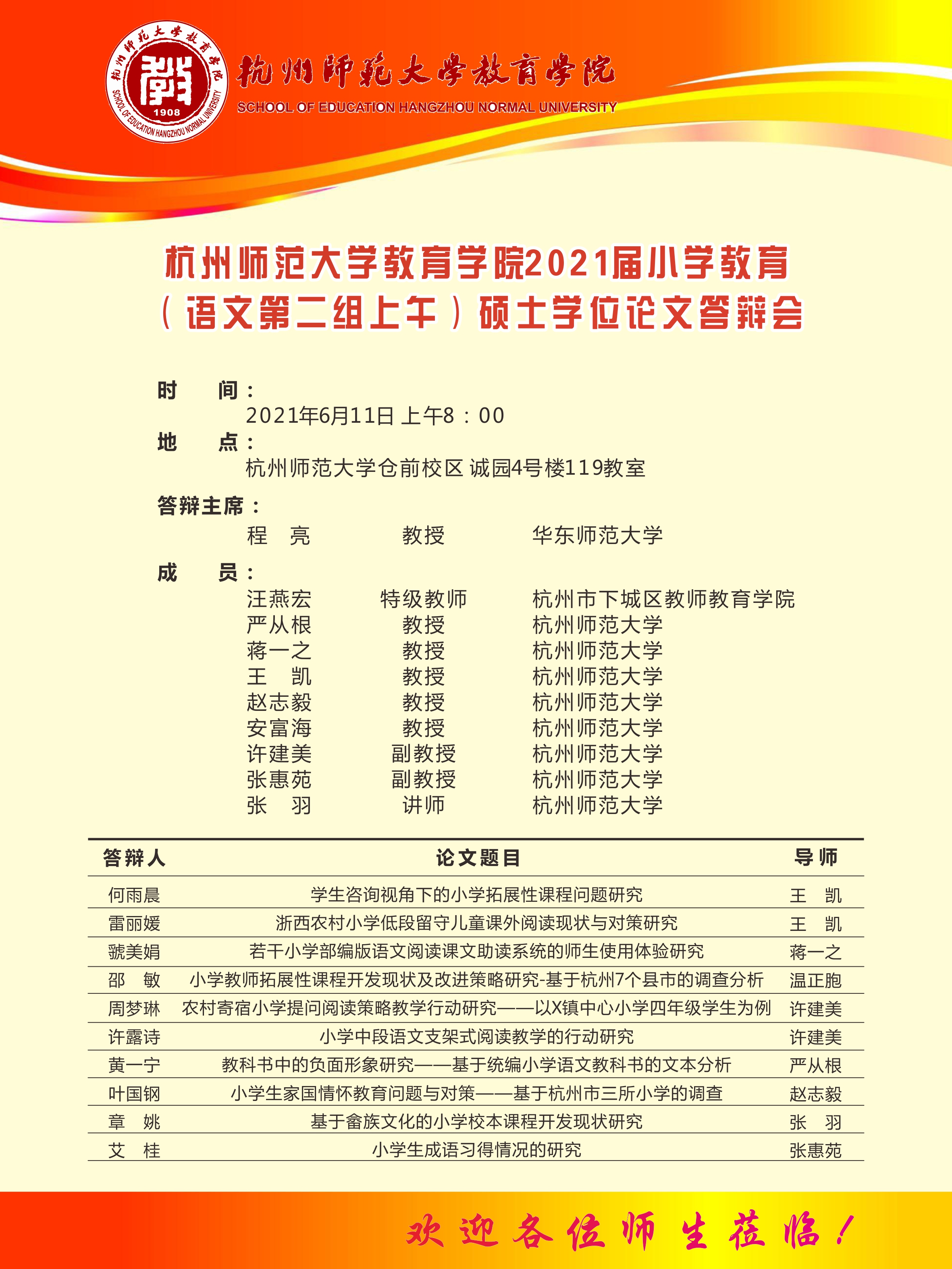 桃花族论坛 教育学院2021届小学教育(语文二组上午)硕士学位论文答辩会
