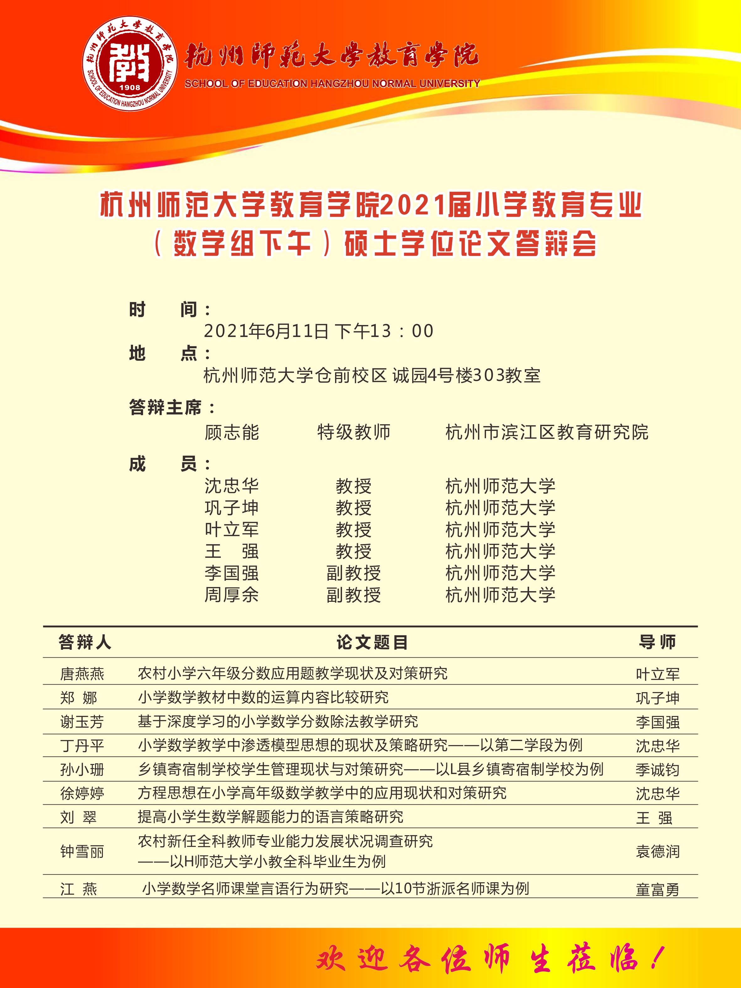 桃花族论坛 教育学院2021届小学教育专业(数学组下午)硕士学位论文答辩会