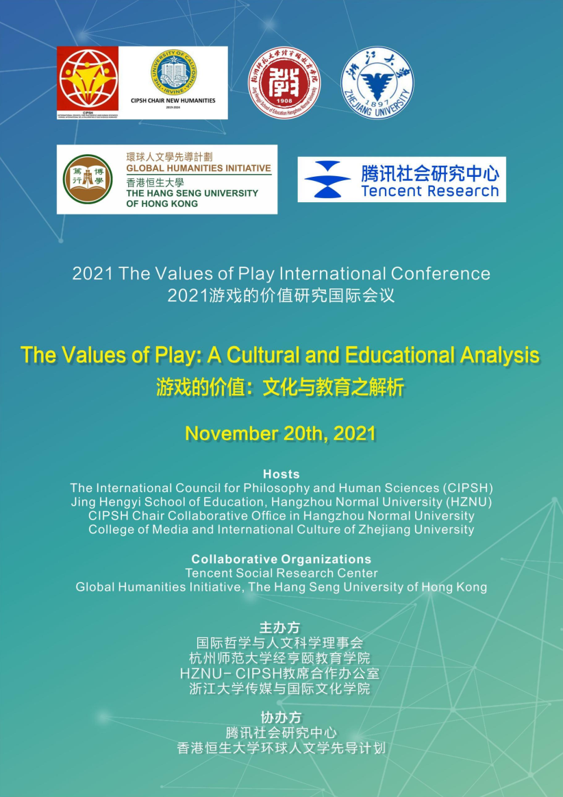 CIPSH, together with its partner Tencent, likes to organize an academic event focusing on the issue of “Play”. As instinctive and essential to the human nature, the need of and the enjoyment of playful activities have attracted increasing attention, even debate, on the core value, instrumental implication, and the necessary conditions such represent in human societies. Social distancing during the pandemic has raised the problems of mental health to higher alert. Internet technology also demands thorough investigation and reflection on the many socio-cultural environments and policy, business conditions surrounding the entertainment and creativity associated with this development. The CIPSH Chair office at HZNU, together with the Humanities Division of the Zhejiang University, as well as its partner of the Tencent company and other institutions, were successfully held "2021 The Values of Play International Conference" to discuss the meaning and value of play as a phenomenon.