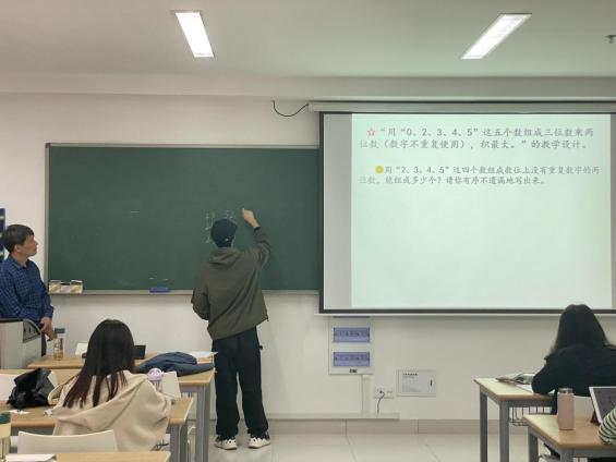 整个过程中,张老师以具体形象的案例、生动而简洁的语言和角色扮演的方式让同学们感悟到要基于提高学生数学思维和自主性的目的设计课堂教学短短的一个半小时很快结束了,同学们都收获颇丰,对教学设计有了更加深刻认识与理解。