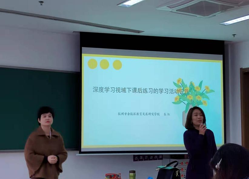 2022年4月1日杭州市余杭区教育发展研究学院朱红老师应邀来到桃花族论坛 为21级教育硕士小教班的同学们进行了以“深度学习视域下课后练习的学习活动设计”为主题的讲座。