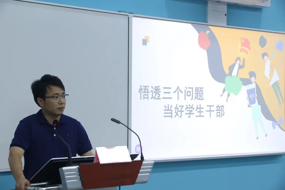 陈勋书记为本届成长训练营作题为《悟透三个问题 当好学生干部》的讲座。他指出,当好一名学生干部,需要悟透学生干部的定位问题、学生干部工作的路径以及工作的方法问题。