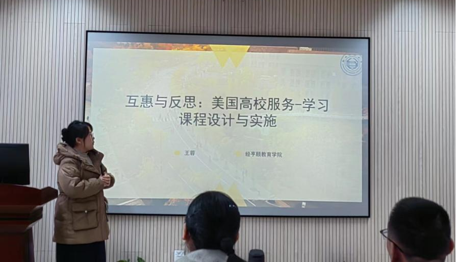 沙龙第一位主讲人是王蓉博士,她分享的主题是“互惠与反思:美国高校服务-学习课程设计与实施”。王老师首先介绍了服务-学习课程的内涵。根据美国高等教育协会的界定,服务学习指的是将学术课程与服务活动相结合,促进学生学习和公民意识的一种方法。服务-学习课程是指将服务-学习的方法融入传统课程中形成的一种新的课程形式。当前,服务-学习课程已经成为美国高校中最常见的课程类型之一,同时许多高校都建立了较为完善的课程体系。现有研究与高校实践经验表明,服务-学习课程不仅能够满足社区需要、解决社区问题,同时有利于提高学生的专业学习,培养学生的公民意识与实践能力。因此,本研究对服务-学习课程设计与实施的基本模式、核心步骤与关键问题就行了系统深入的分析。研究发现,服务-学习课程能够通过高校与社区的密切合作,将理论学习与社区服务紧密结合,最终实现学生学习与社区发展的双赢。而究其根本,服务-学习课程成功的关键,就在于课程背后蕴含的互惠与反思两大核心理念,并且教师能够运用切实有效的方式,将其融入课程设计与实施的整个过程中。最后,王老师对研究进行了总结与反思,她指出对服务-学习课程的探究,对推进我国当前的本科社会实践一流课程建设,尤其是如何加强高校和实践基地的合作以及增强专业学习和社会服务的结合这两个关键问题,具有积极的启发和借鉴意义。