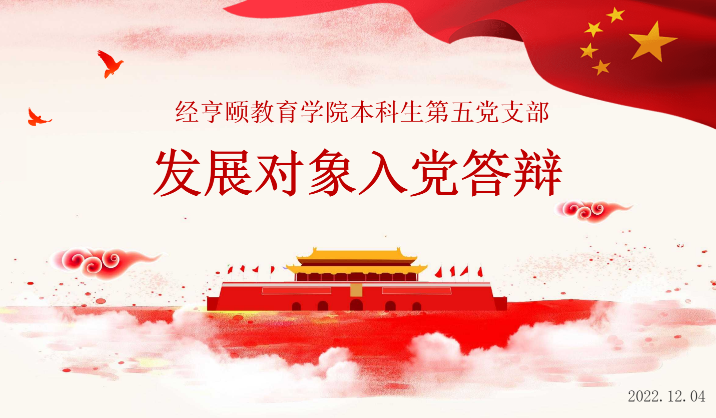 为确保吸纳优秀学生入党,掌握学生入党动机、思想状况和党性修养,提高学生加入党组织的积极性,树立学生对加入党组织的敬畏感,本科生第五党支部对发展对象进行入党答辩。支部书记、支部正式党员、支部联系人作为答辩考评组成员。