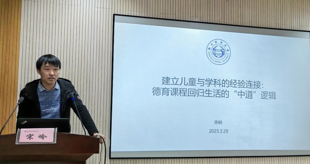 沙龙第二位主讲人是宋岭博士。宋老师主讲的题目是“建立儿童与学科的经验连接:德育课程回归生活的“中道”逻辑。主要内容包括:德育课程从学科逻辑到生活逻辑回归的历史梳理,德育回归什么样的生活和谁的生活的内涵明晰,以及如何用连续性的生活经验建立起儿童与学科的联结。宋老师强调,回归生活并不是完全回归去学科化的、纯粹实然的、儿童个体的现实生活,而是回归包含学科知识与日常经验、专业世界与生活世界、应然与实然相统一的完整的教育性生活。学科经验与儿童生活经验并非非此即彼的关系,回归生活的德育要通过“学科经验的心理化”和“心理经验的学科化”这一双向接续的课程,建立起儿童经验与社会经验、儿童心理逻辑与科学化的学科逻辑以及实然和应然之间的联结。