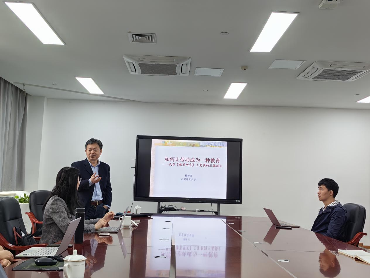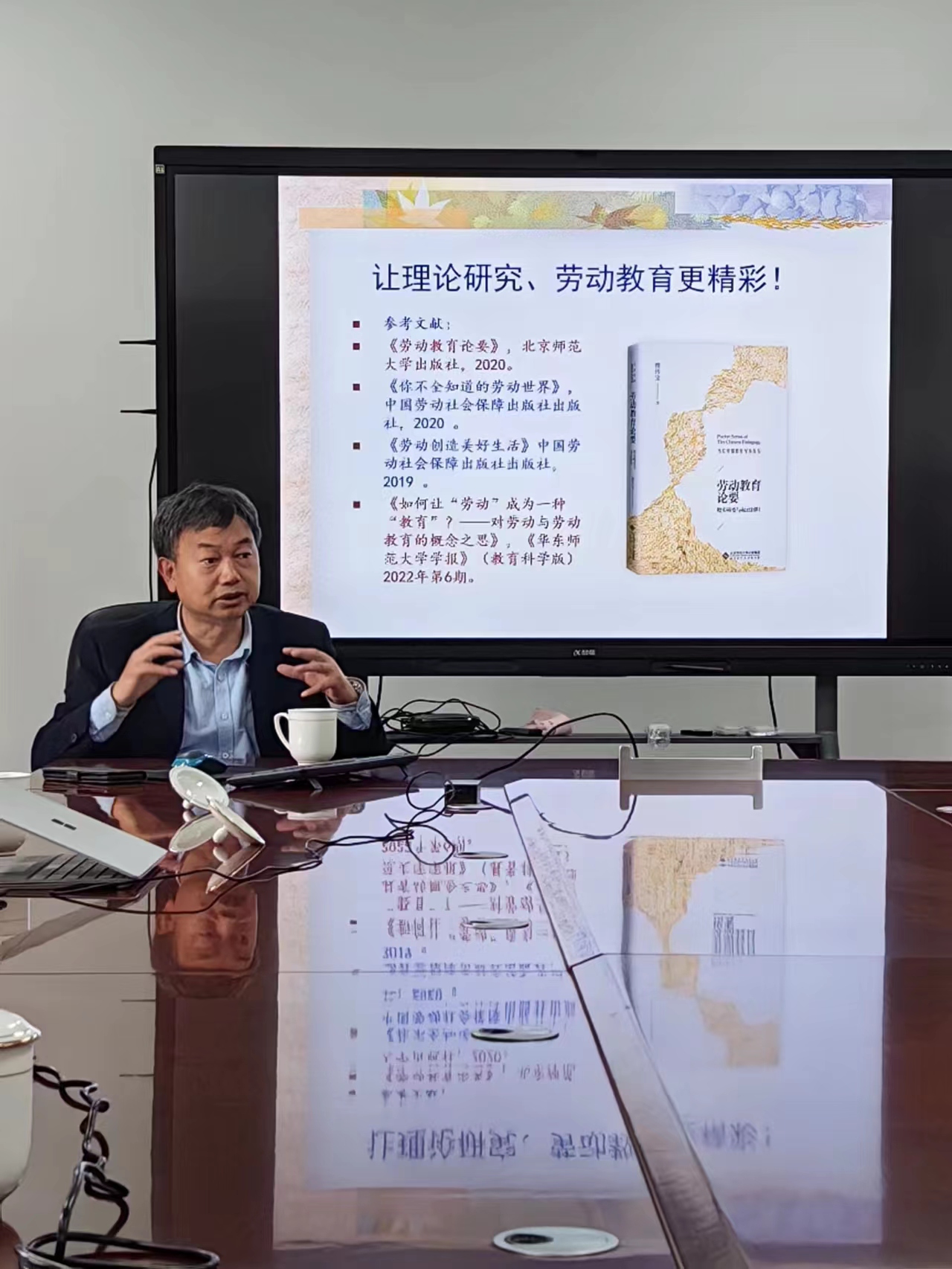 2023年4月22日上午,北京师范大学檀传宝教授做客桃花族论坛 ,为桃花族论坛 师生做题为“如何让劳动成为一种教育”的讲座,许建美教授主持讲座。
