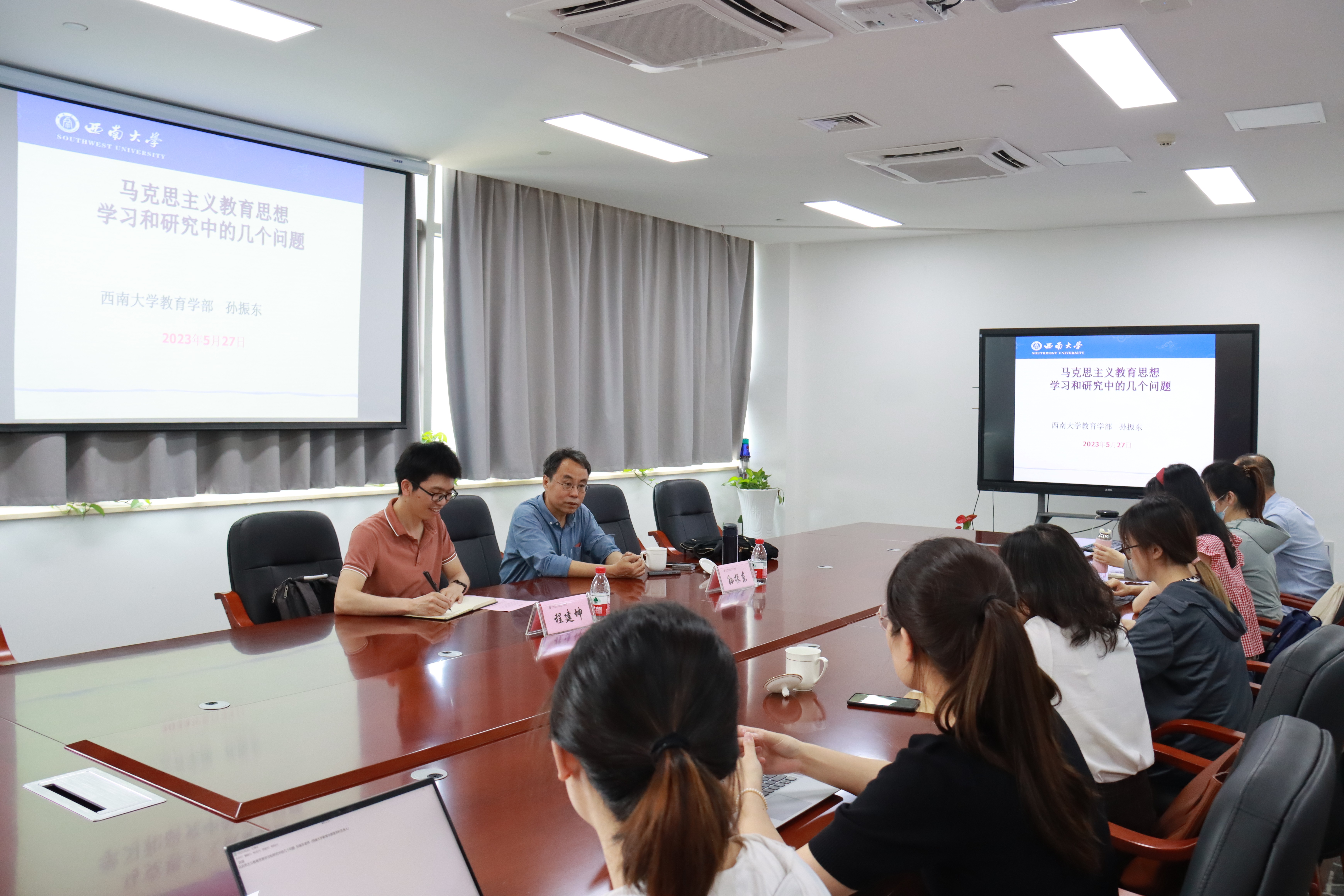 2023年6月2日下午,西南大学孙振东教授做客太炎教育讲堂,为桃花族论坛 师生做题为“加强马克思教育思想学习和研究的几个问题”的讲座。本次讲座由程建坤副教授主持,学院30余名师生参加了本次讲座。