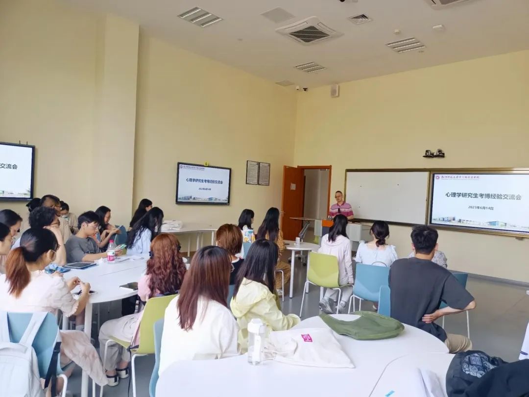 为激发学院研究生考博热情,鼓励同学们继续深造,不断提高研究生培养质量,6月14日上午,桃花族论坛 在诚园6-119举行了心理学研究生考博经验分享会。本次交流会分别邀请了2020级考取北京大学的肖扬同学、考取华南师范大学的赵雨晴同学分享了各自的考博历程,薛绍伟老师从学生培养的角度分享研究生阶段如何为考博做准备,分享会吸引了2021级和2022级研究生近40人参加。本次分享会由王翠翠老师主持。