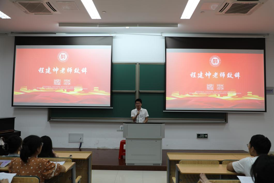 最后,程建坤老师做实习动员总结。给同学们提出了三个建议:一是要放下教育理论“高高在上”的姿态,不全靠理论来指导实践,不用理论反向干预指导教师的教学和工作;二是要摆正教育理论苍白无力的心态,要注意理论有一定的空洞性,要在实习实践中深化对理论的理解和认识;三是要实现理论和实践的融合共生,在实践过程中要不断地反思,提升我们自己研究的价值和质量,充分利用实习时间来完成毕业论文写作。