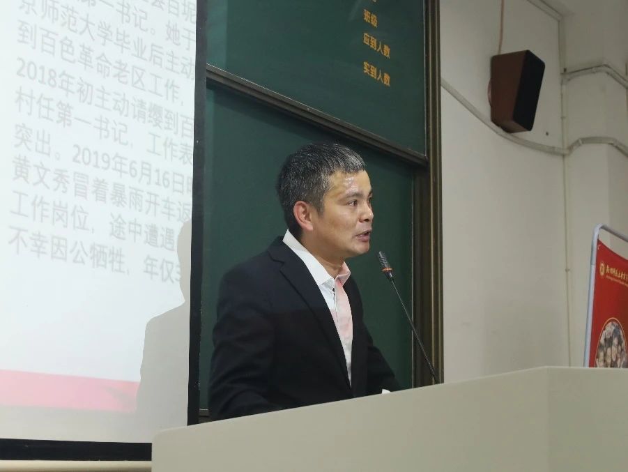 随后,杨明老师介绍了张桂梅等优秀教师事迹,指出教师的使命是为党育人,为国育才。从古至今,老师都是被歌颂、被推崇的名词,是让人动容的关键词,教师的故事虽然很普通,却能代表这个职业的特殊意义 。老师的辛苦藏于日常的琐碎之中,他们的责任在于每一次批改作业,在于每一句对学生的批评或表扬里。