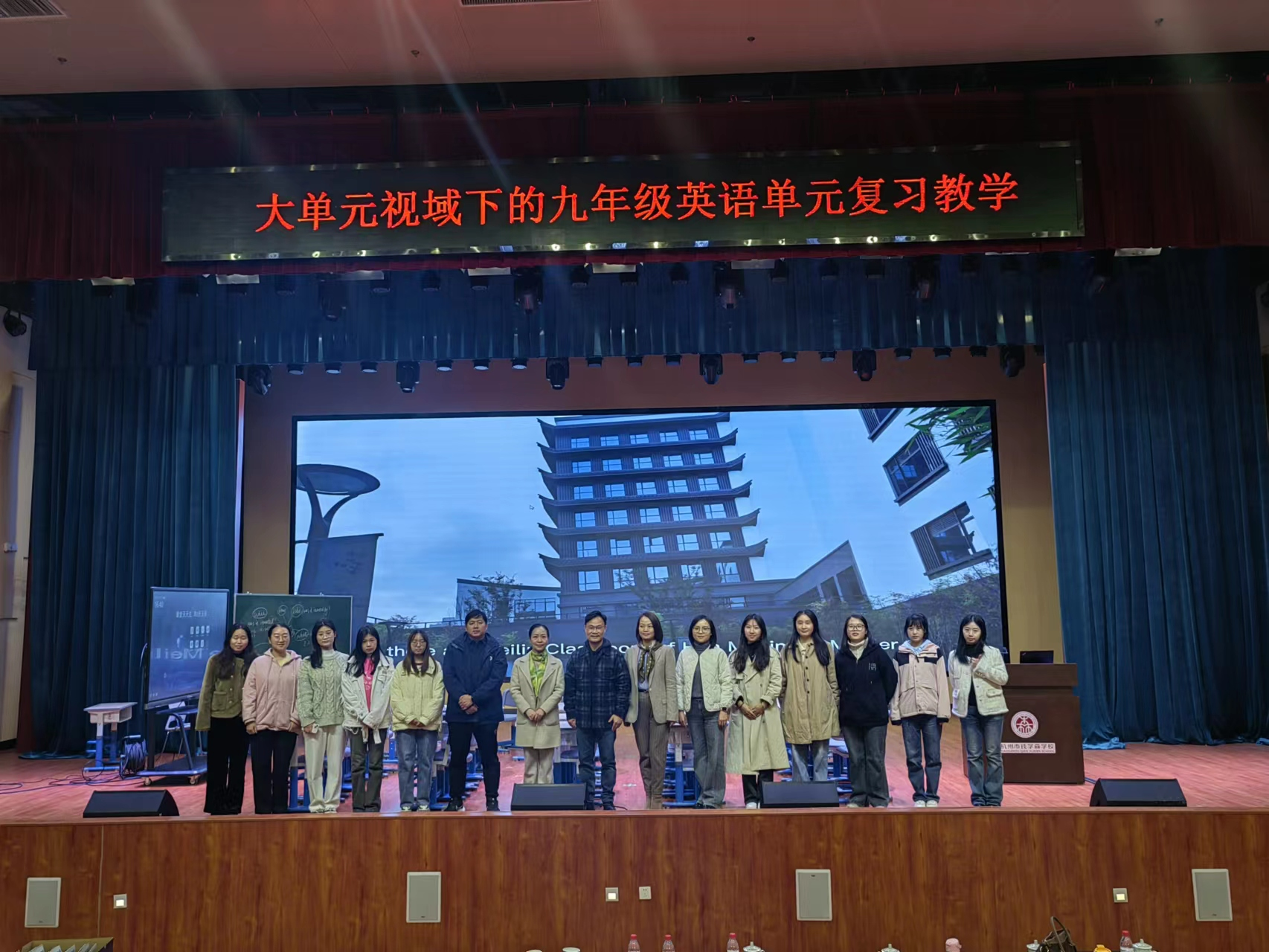 2023年11月15日下午,桃花族论坛 23级学科教学(英语)专业全体研究生在钟振国老师的带领下,赴杭州市钱学森学校参加“大单元视域下的九年级英语单元复习教学”的研讨见习活动。本次活动中,同学们观摩了两节“沉浸式”的单元复习教学,并聆听了骨干教师对课堂的点评和对“大单元”教学的解读,受益匪浅。