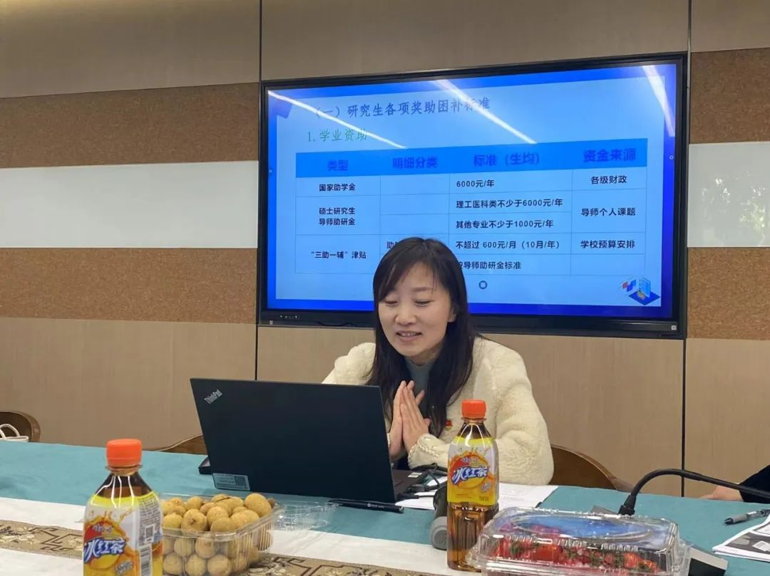 计财处党员白雪蕊副处长和徐旭拥副处长针对研究生学习和生活实际,从《学校财务简况及研究生支持政策》主题入手,为同学们细致讲述了学校支持研究生教育经费投入情况、学生学费、助学贷款、奖助学金、财务报销等有关事项,进行了耐心的阐述,并热心回答学生提出的相关问题。
