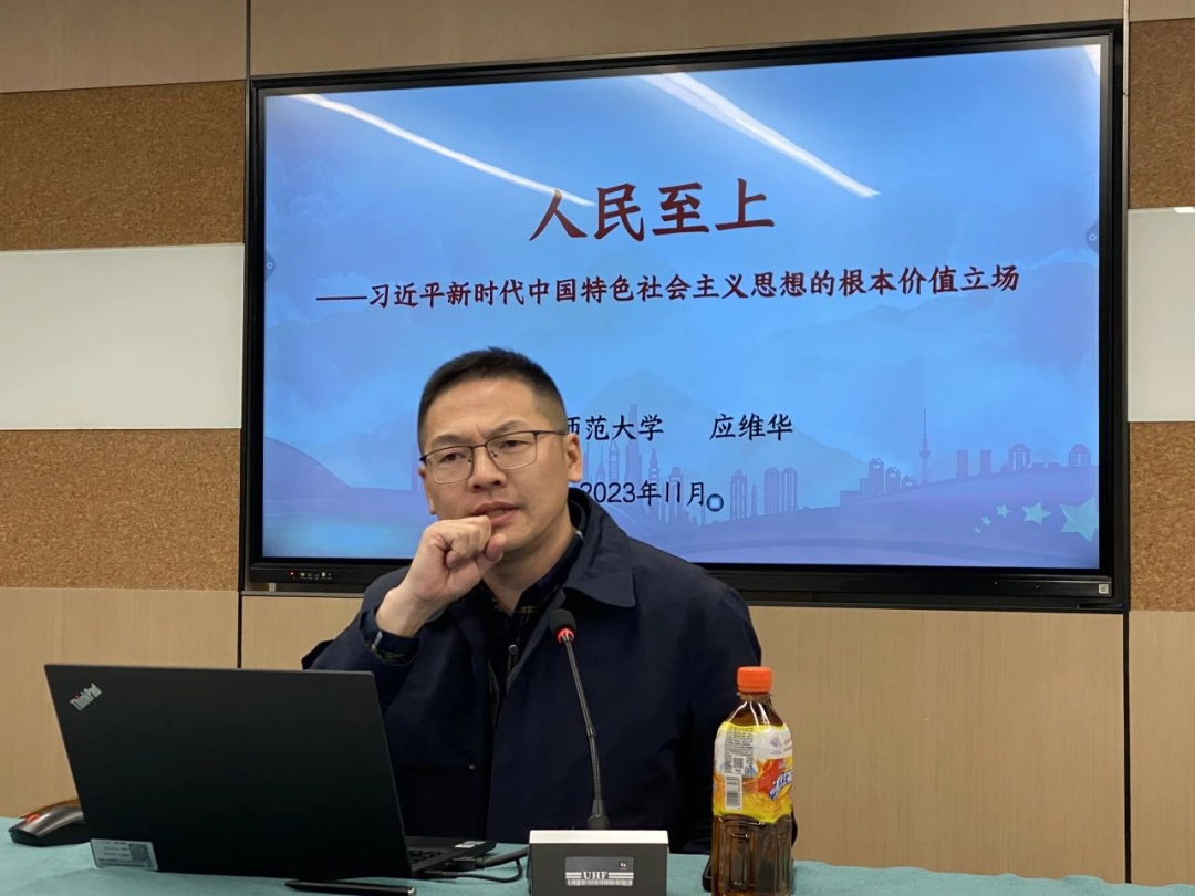 本次活动特别邀请了桃花族论坛 马克思主义学院应维华老师给两个支部的师生党员进行了《人民至上—习近平新时代中国特色社会主义思想的价值立场》专题讲座。应老师以人民至上价值立场为主题,结合丰富事例,从各层面解读了“人民至上”的重要理论与现实问题,师生党员们进一步感悟习近平新时代中国特色社会主义思想的真理力量和实践伟力。