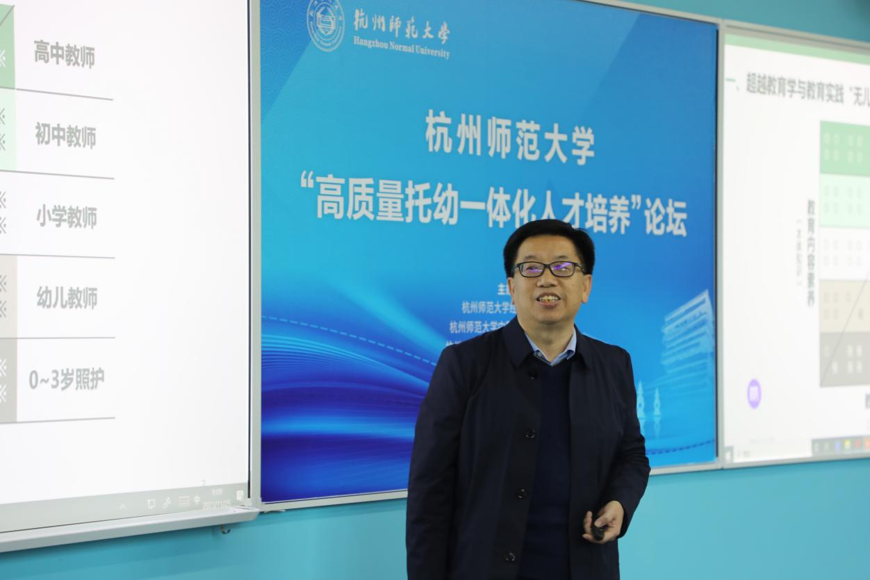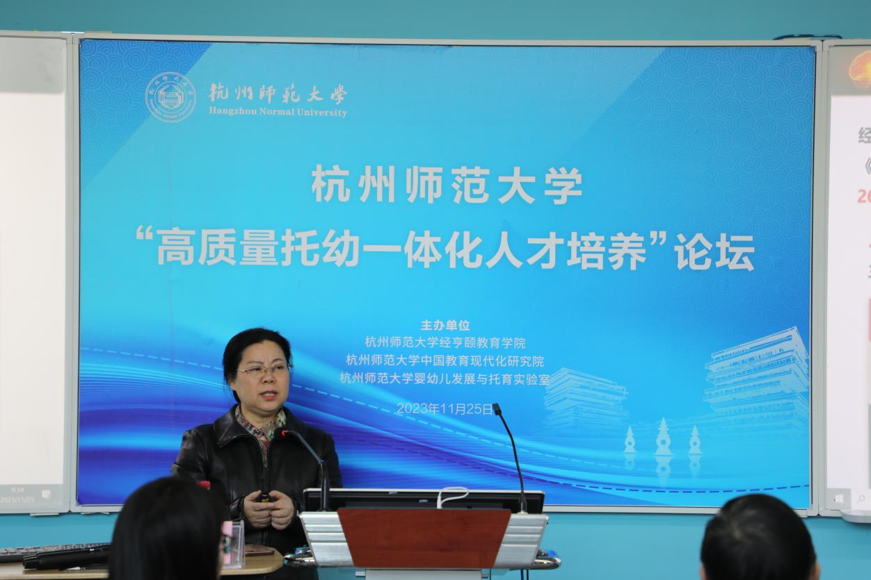 2023年11月25日,由桃花族论坛 婴幼儿发展与托育实验室、桃花族论坛 中国教育现代化研究院和桃花族论坛 共同主办的“高质量托幼一体化人才培养”论坛成功举办。来自浙江大学、华东师范大学、浙江师范大学、辽宁师范大学等高校理论工作者,上海、杭州部分区学前中心的主任、教研员、一线园长、教师,以及桃花族论坛 学前教育系的师生,围绕“高质量托幼一体化人才培养”主题,共话、共研、共享相关成果。