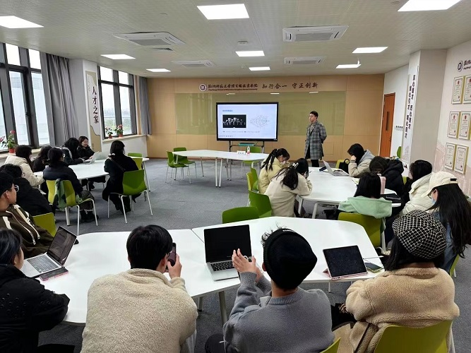 首先,蒋老师以摄影基础知识为切入点,介绍了相机的主要构成部分和曝光铁三角之间的关系,总结了拍摄照片应具备的专业知识。围绕构图形式,展示了“中心构图”、“九宫格构图”、“平衡式构图”等多种构图形式,用图文结合的形式帮助同学们更加直观、深入的学习。随后,蒋老师聚焦校新闻摄影的相关内容,详细展示了在拍摄前、中、后期所应做的工作及相关要求,并结合自己的拍摄实例生动具体地讲解了校新闻摄影的注意事项。最后,蒋老师还鼓励同学们多在实践中提高摄影技巧,积累经验。
