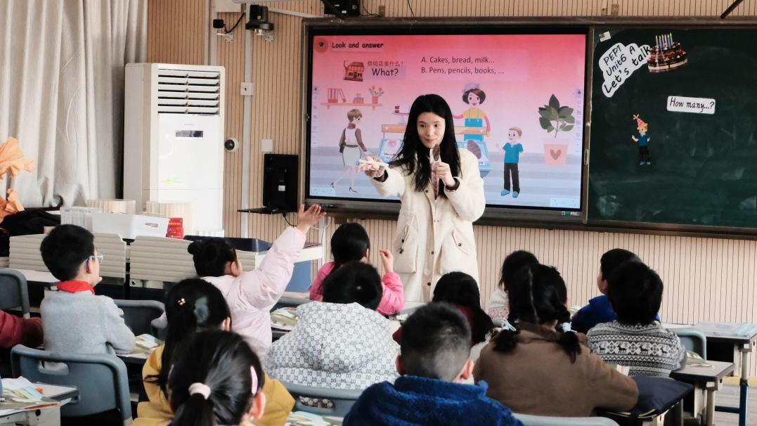 第一节课由杭州市之江第二小学李晴老师进行讲授,授课内容为三年级上册第六单元的A Let’s talk。在授课过程中,李老师从歌曲导入,让学生在购物语境中理解语篇各句型的意思,并以学习单的形式进行巩固。之后,教师进行示范引导学生通过小组合作进行实践演练即分角色扮演。最后,强调主题意义,想象画面自助运用所学句型为朋友挑选礼物。