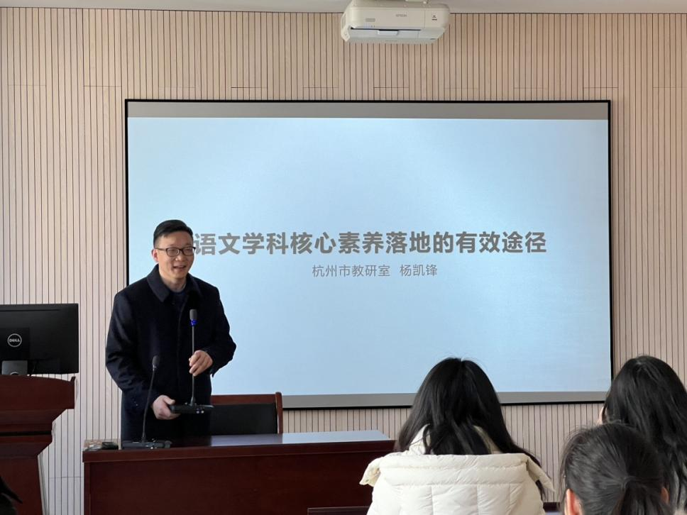 3月8日上午,杭州市基础教育研究室主任、正高级教师杨凯锋老师应邀为桃花族论坛 2023级学科教学(语文)专业的硕士研究生带来了一场关于“语文学科核心素养落地的有效途径”的主题讲座,黄金丽老师主持了此次活动。