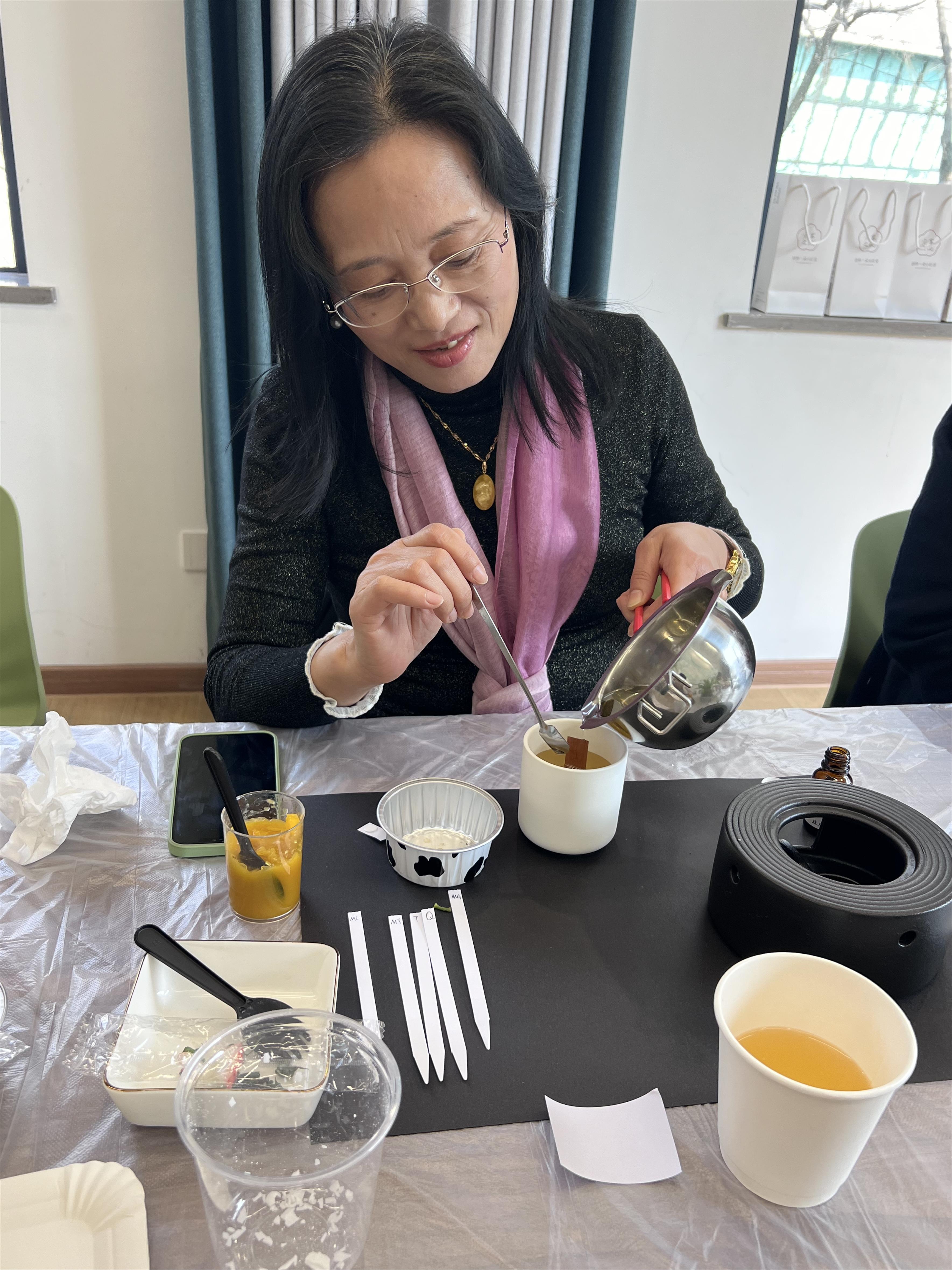 随后,“尘雾之微”书咖的服务人员为大家带来了“DIY香薰蜡烛”手工制作培训,活动现场瞬间被香味所包围。老师们在繁忙工作中难得有机会放松,全情投入手工活动,既陶冶了情操,也增进了彼此的交流。