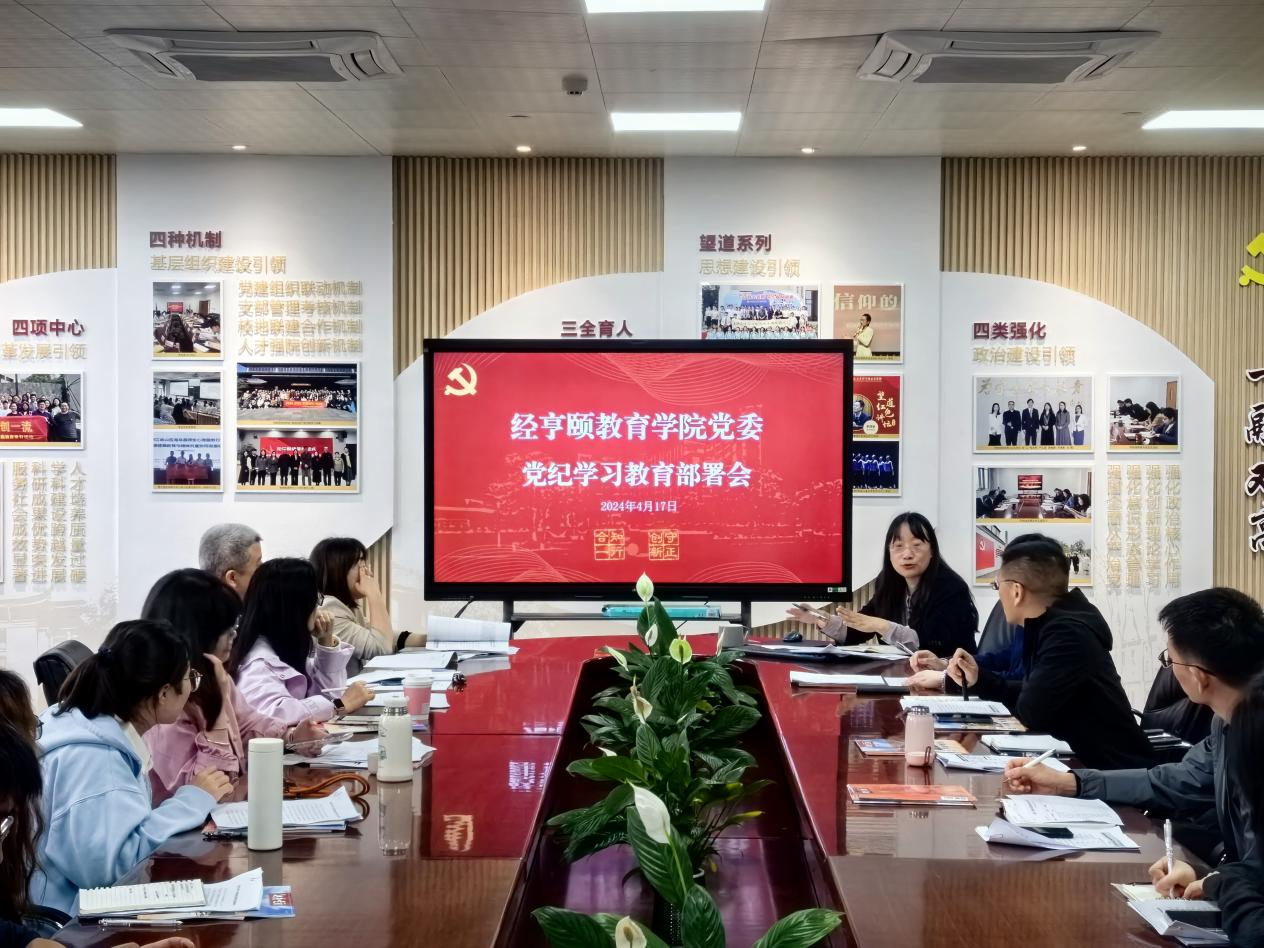 4月17日下午,学院党委召开全体党支部书记会议,传达学习党中央、省市委和学校党委关于党纪学习教育工作部署要求,专题部署党纪学习教育工作。由党委书记蒋璐敏主持会议并作动员,全体党支部书记、组织员参加会议。